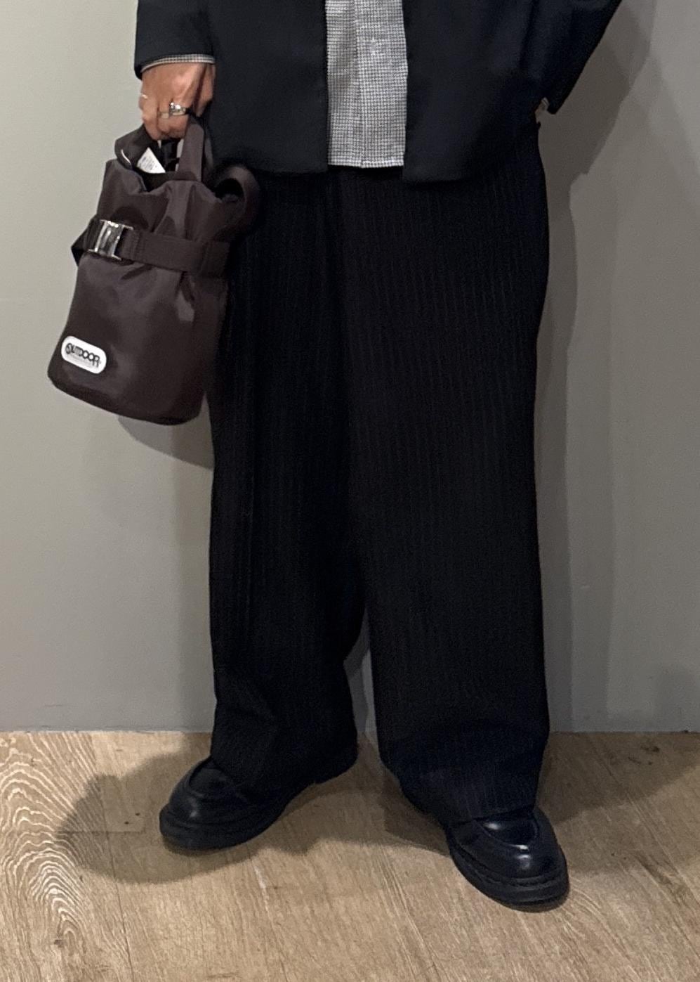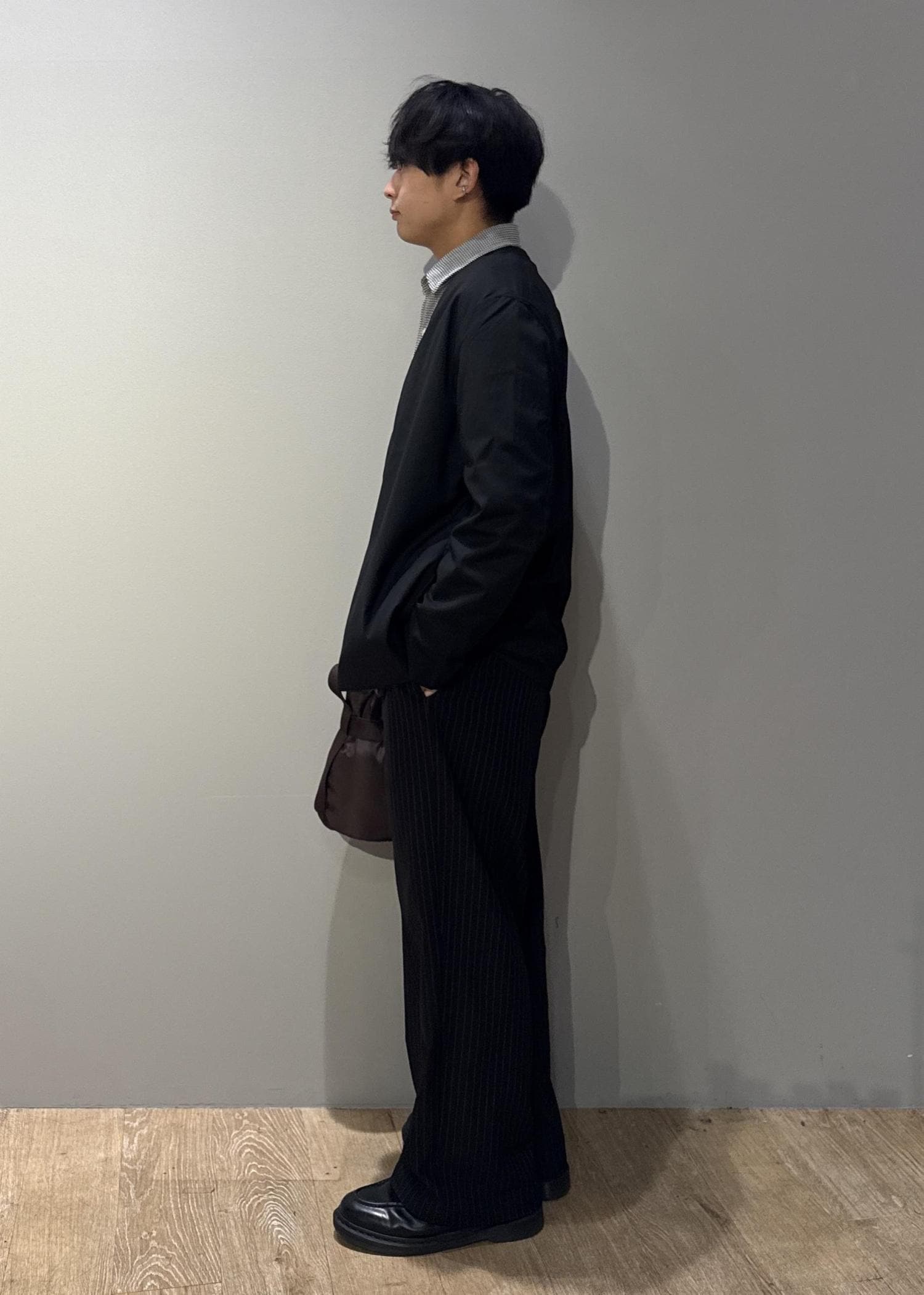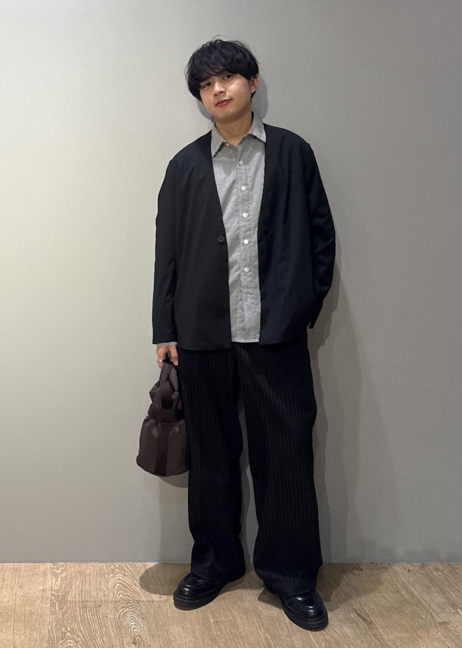 ラフさを出すために柄シャツとワイドパンツで着崩してみました。