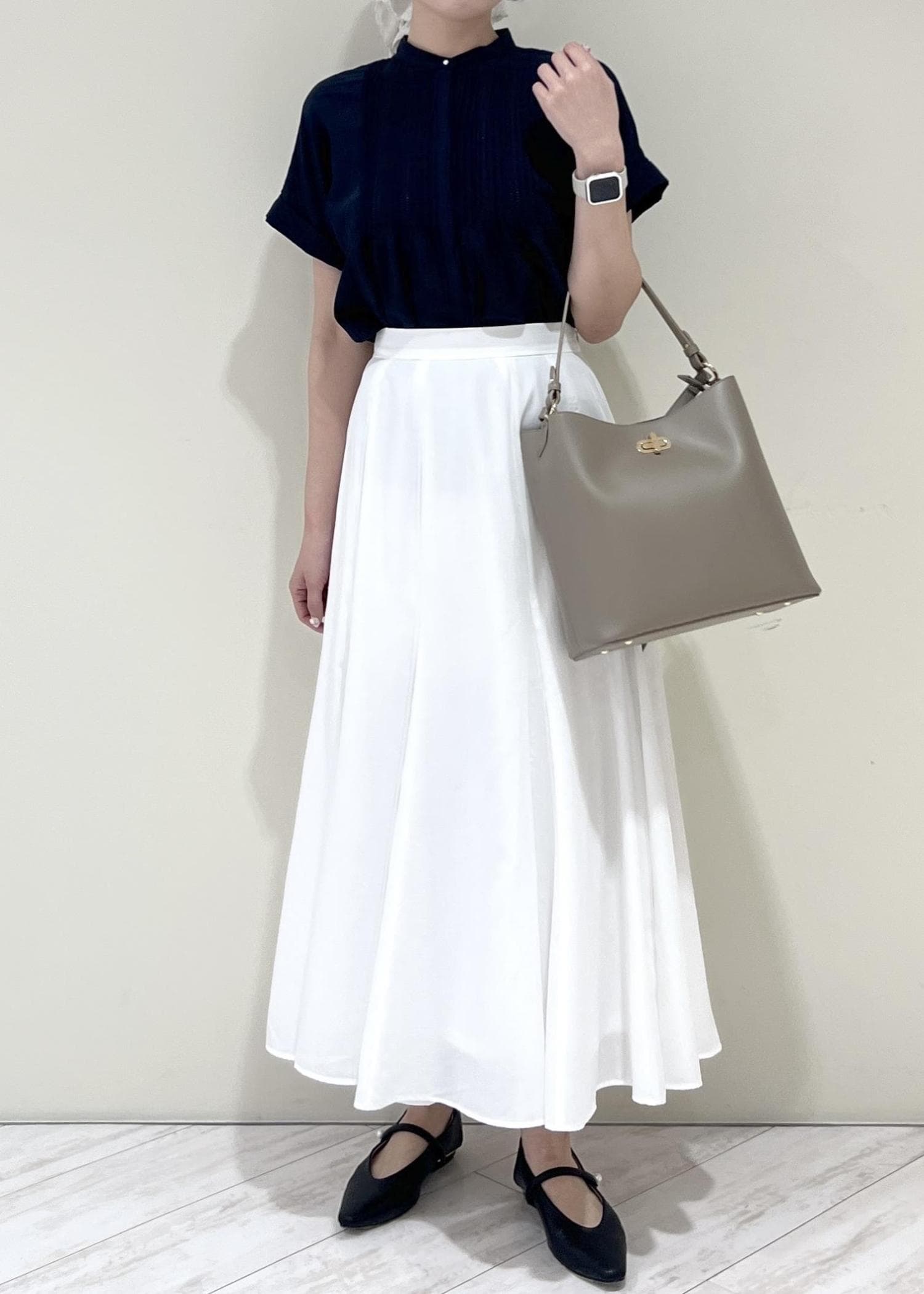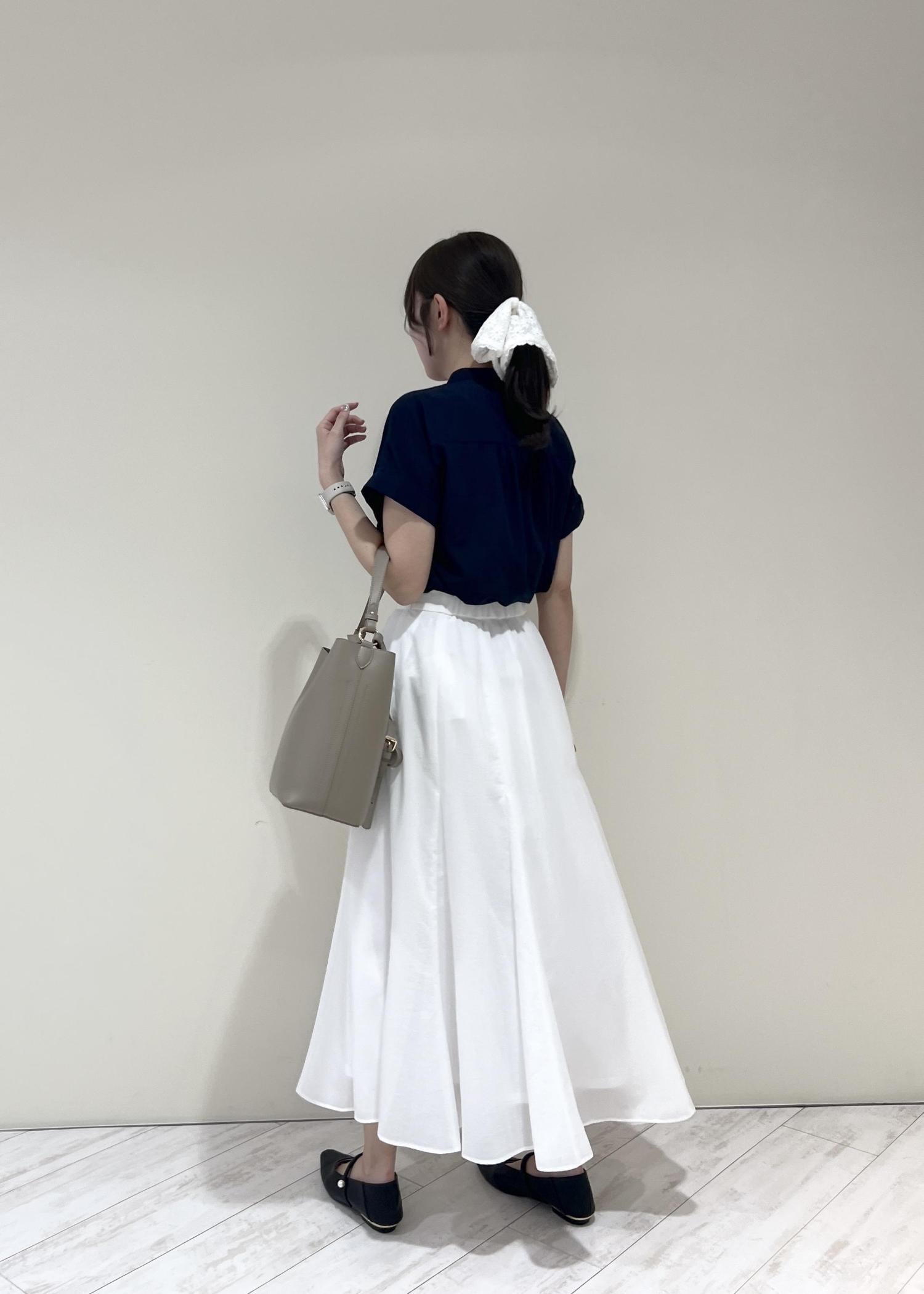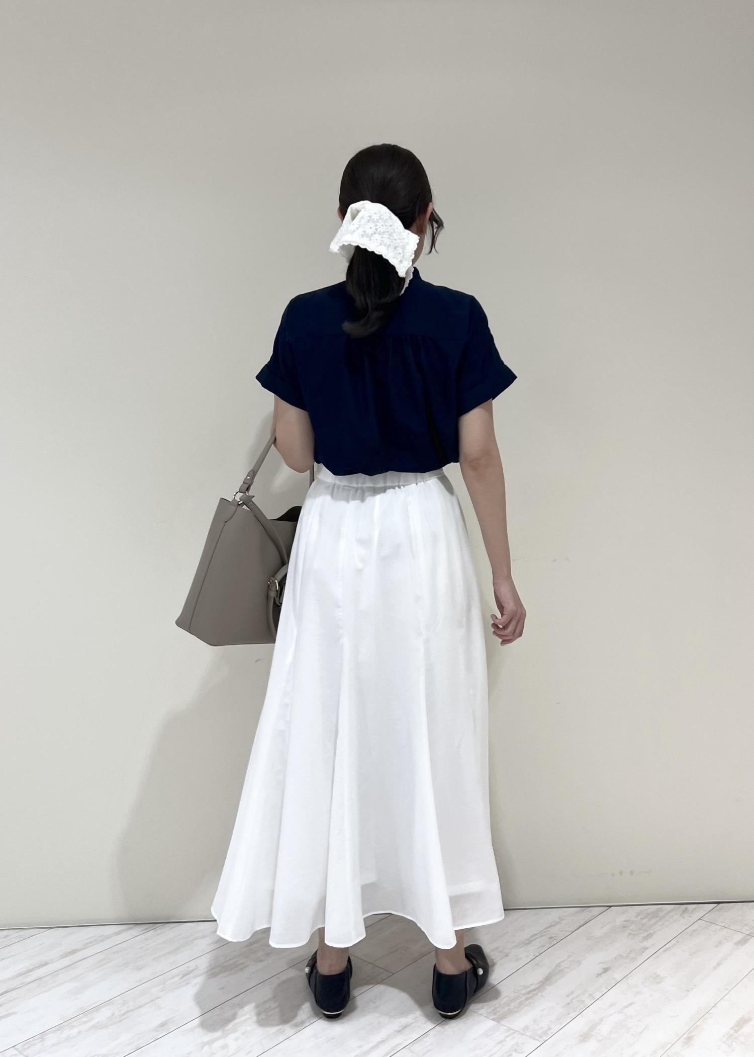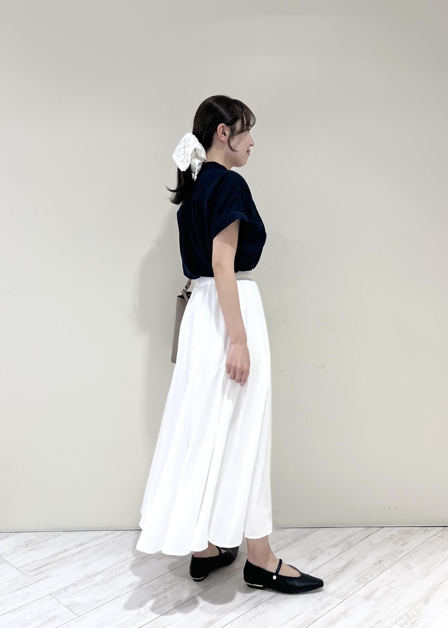 VIS気流染めフレアースカート/イージーケアオフホワイト / F¥6,589レビュー生地感は柔らかく、ウエストはゴムなで楽に着られます!くるぶし上にくる着丈なのでぺたんこ靴を履いてもバランス良く合わせられました◎