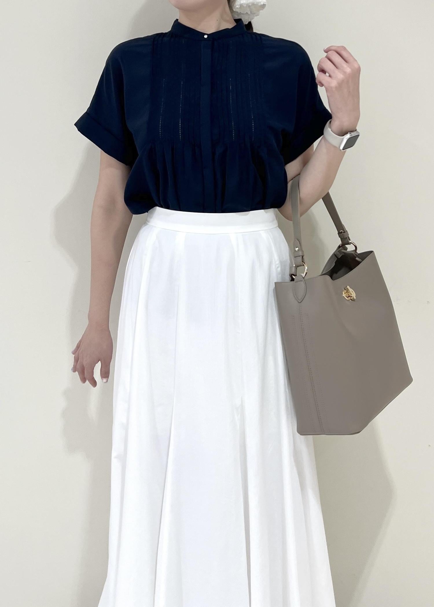 VIS気流染めピコピンタック半袖ブラウス/イージーケア・接触冷感ネイビー / F¥5,489レビュー程よくゆとりのあるサイズ感、腰にかかる着丈で着用出来ます◎気になる二の腕をカバーしてくれます!