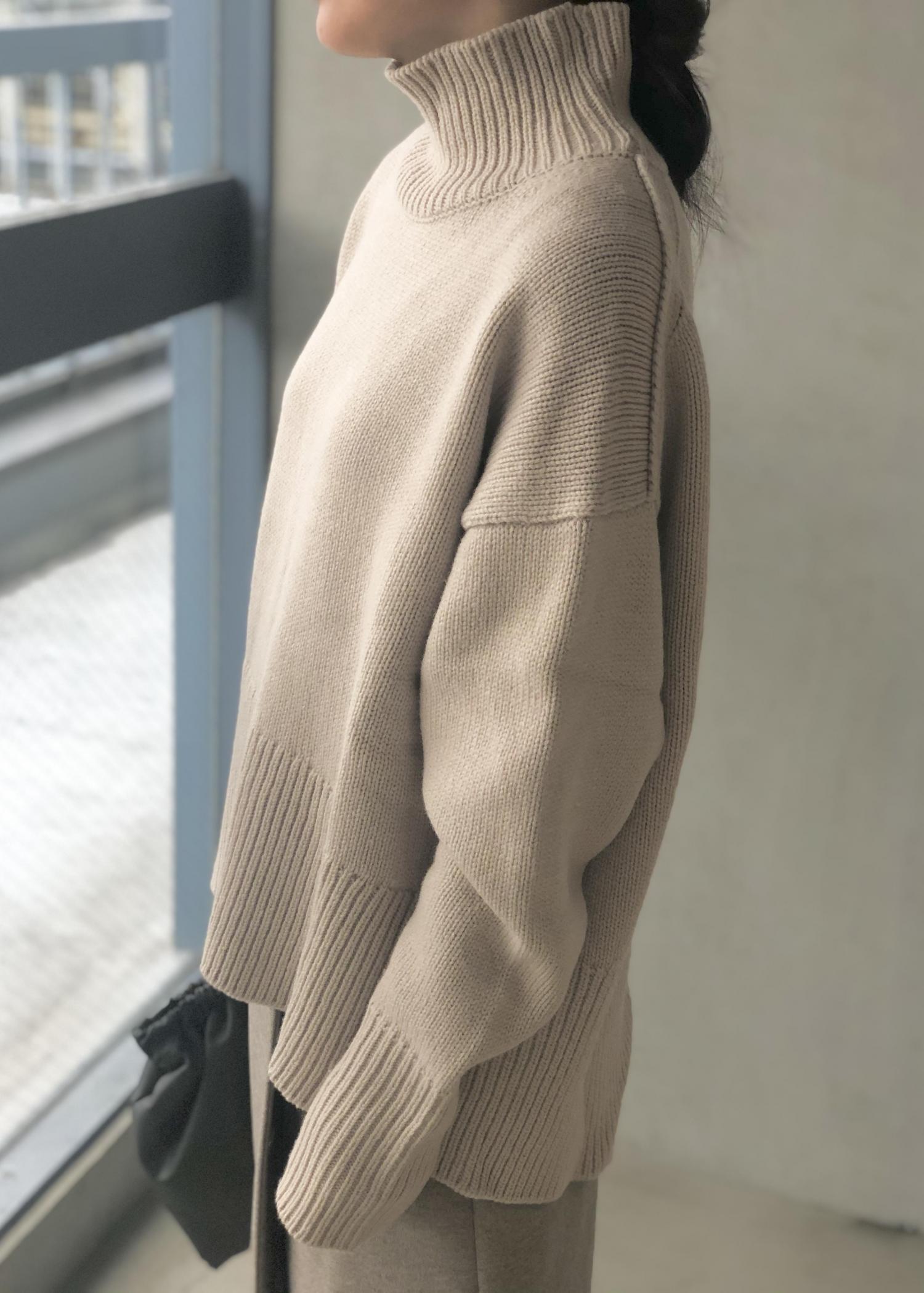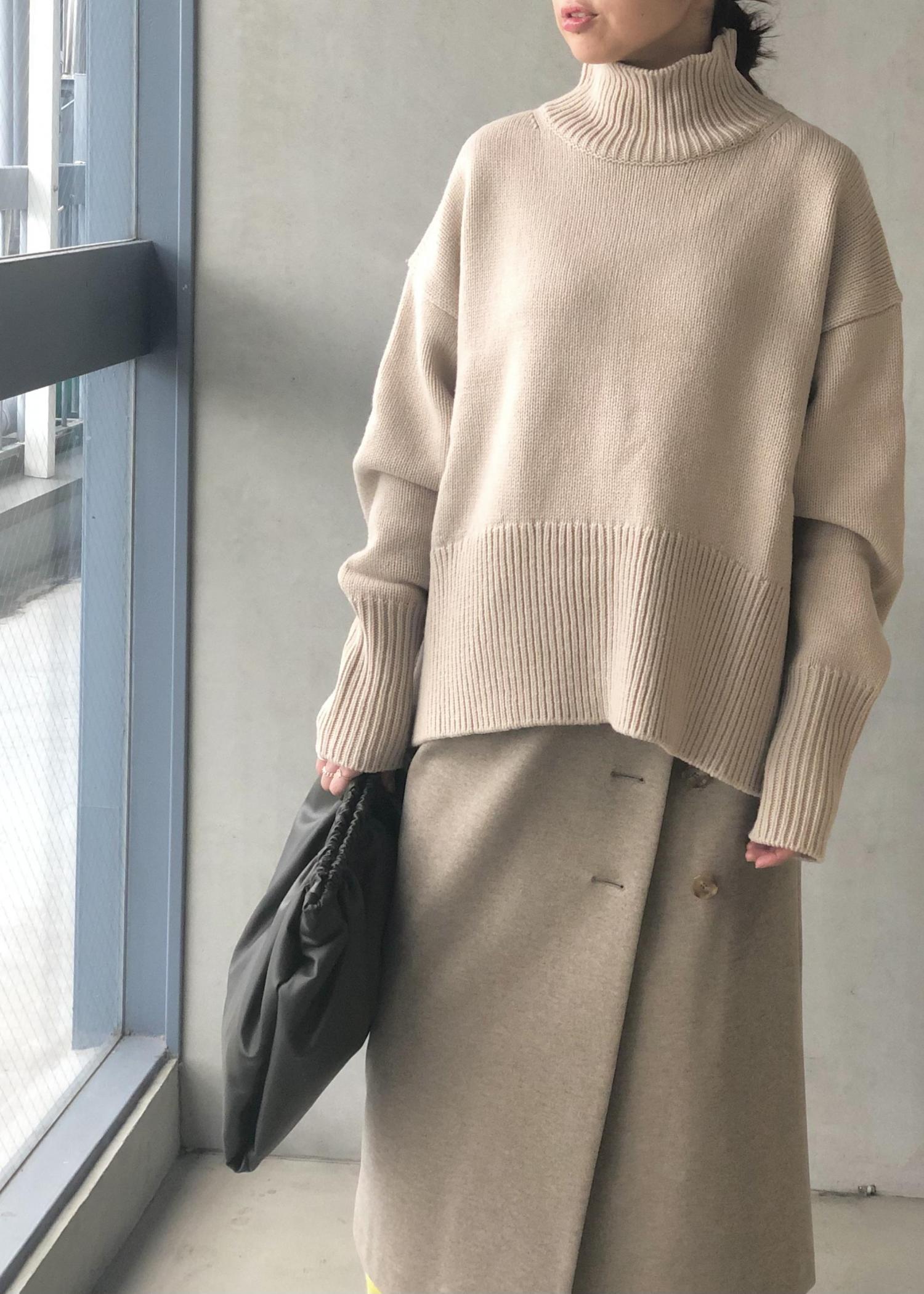 タートル部分が秀逸で、程よい高さがあるので折らずともバサッと着るだけでサマになります。