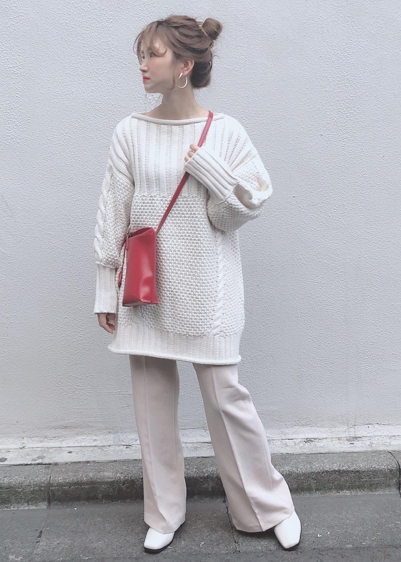 チュニック丈のリブ編みニットをアウトスタイルでゆるっと着るのがオススメです。