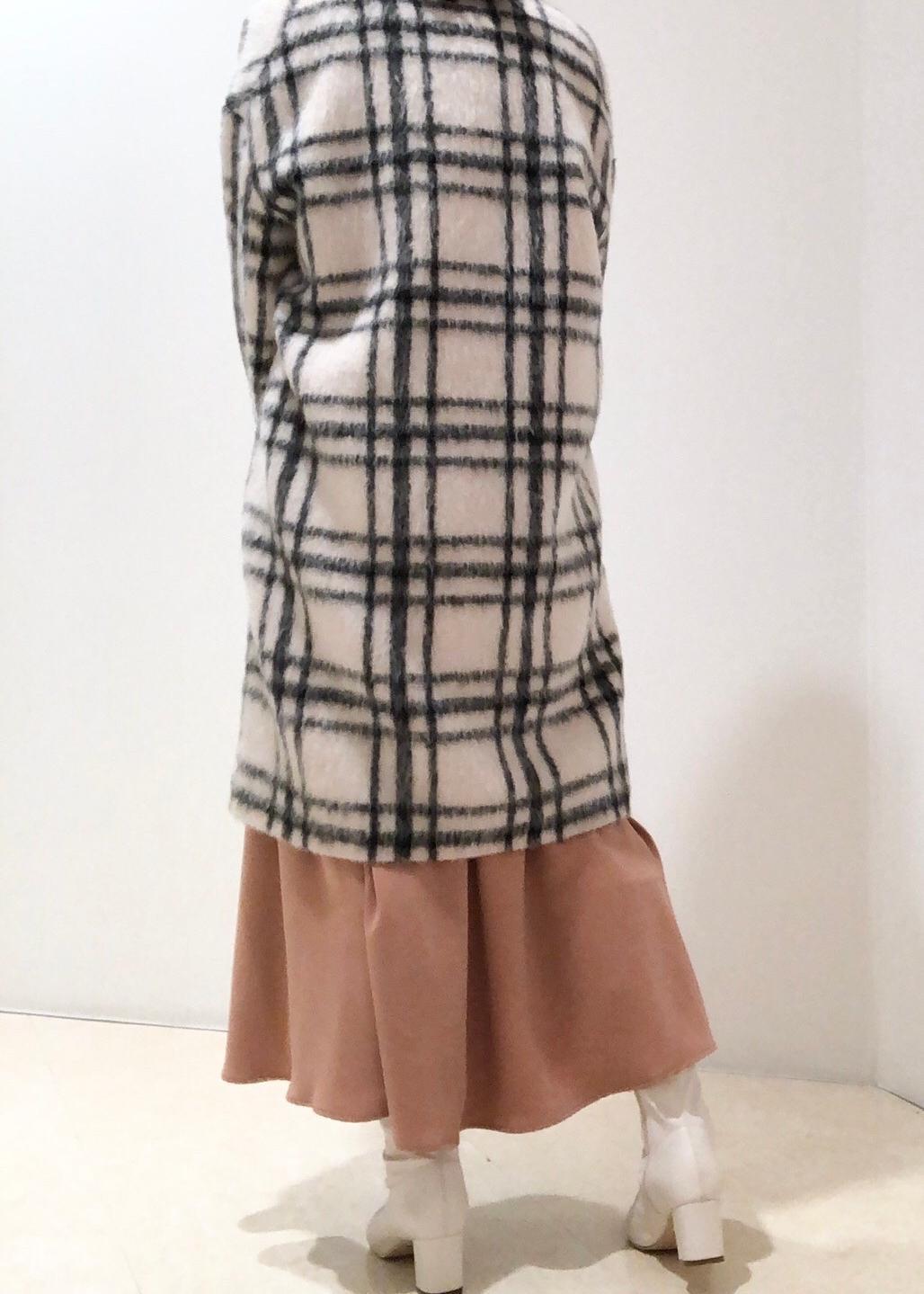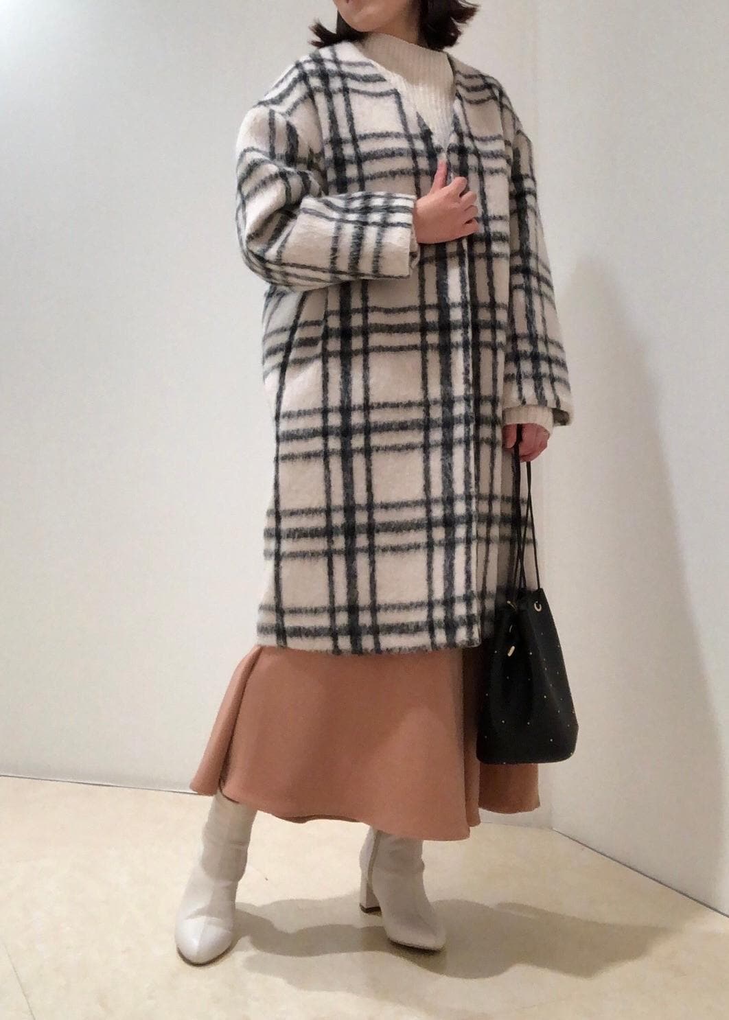チェックのシャギーコートを使った、甘めのスタイルです!