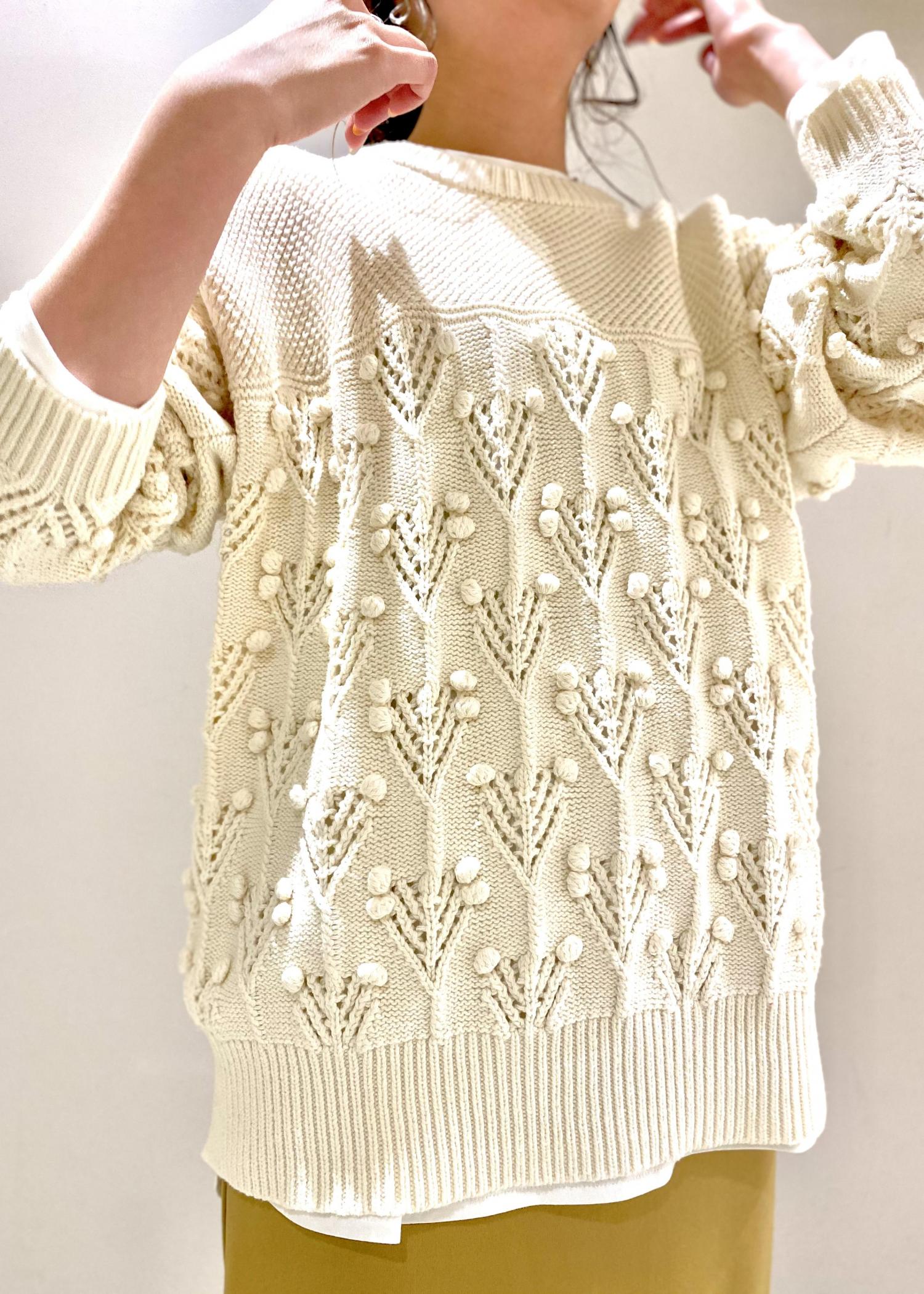 少し厚みのある綿素材のニットで、今からでも春を取り入れられます♪