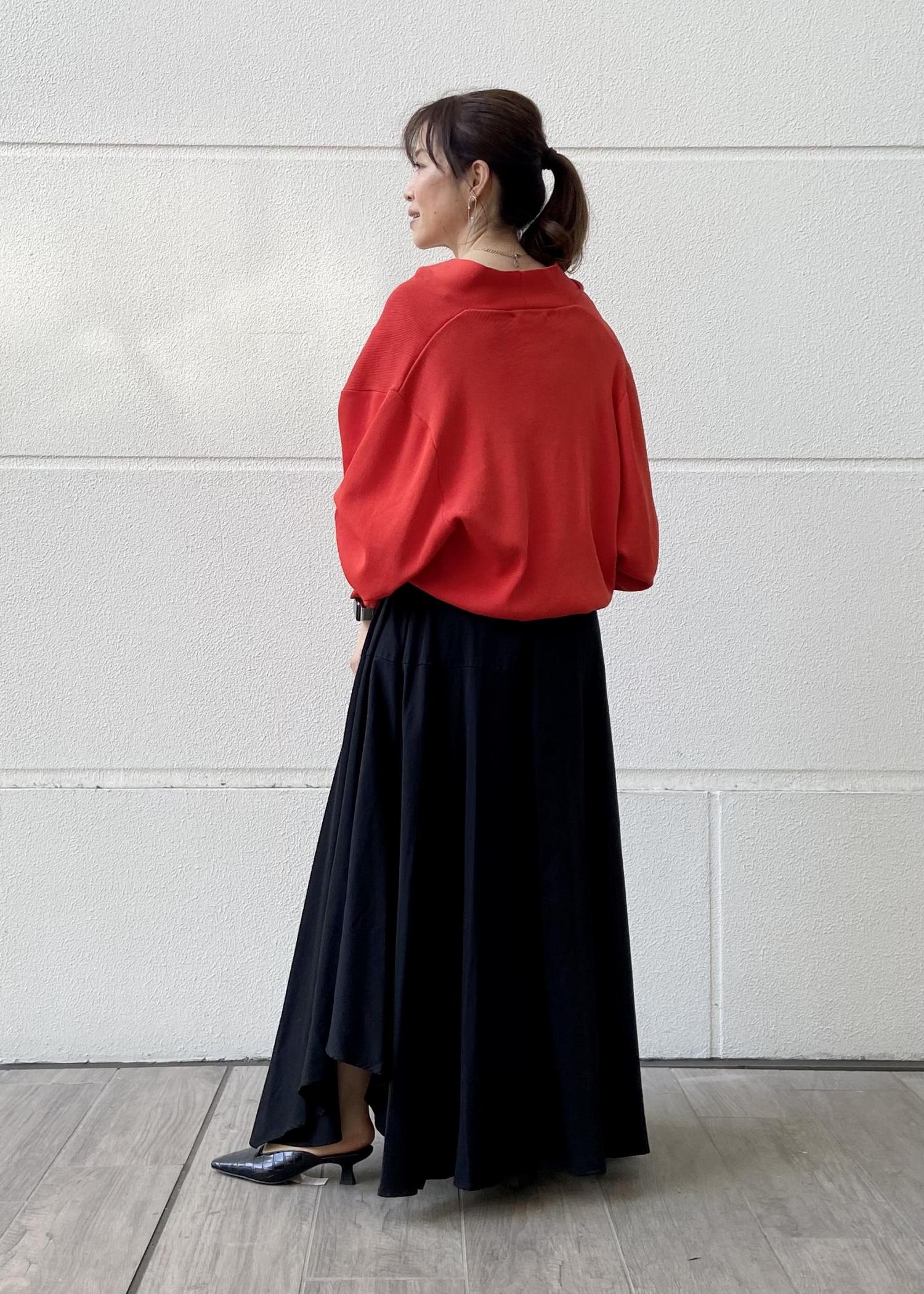 着るだけで自然と襟が抜けるので、どんなボトムと合わせてもキマる一着です。
