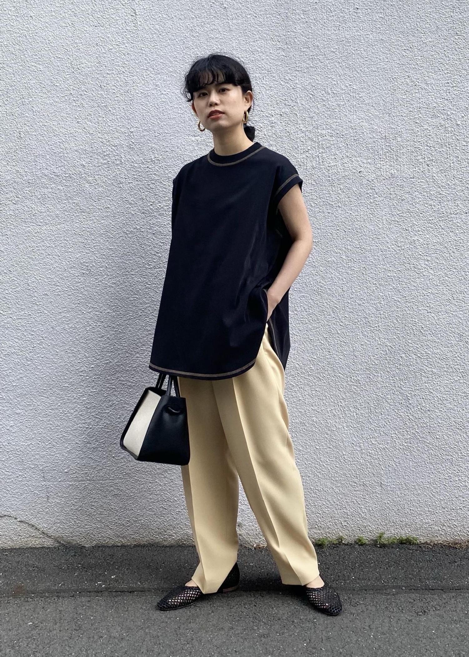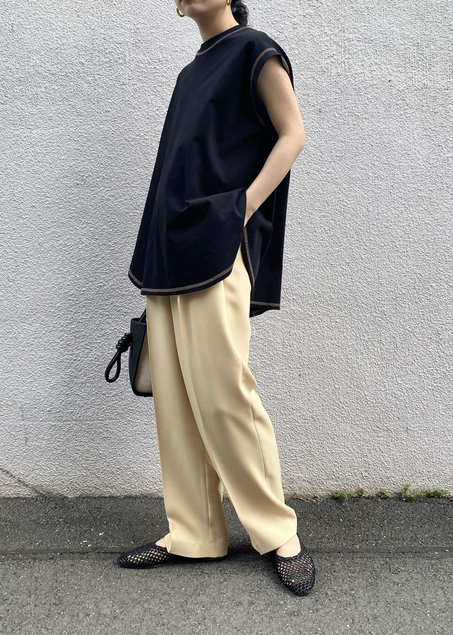 ノースリーブほど腕が出過ぎず、絶妙なカッティングで体型をすっきりと見せてくれます。