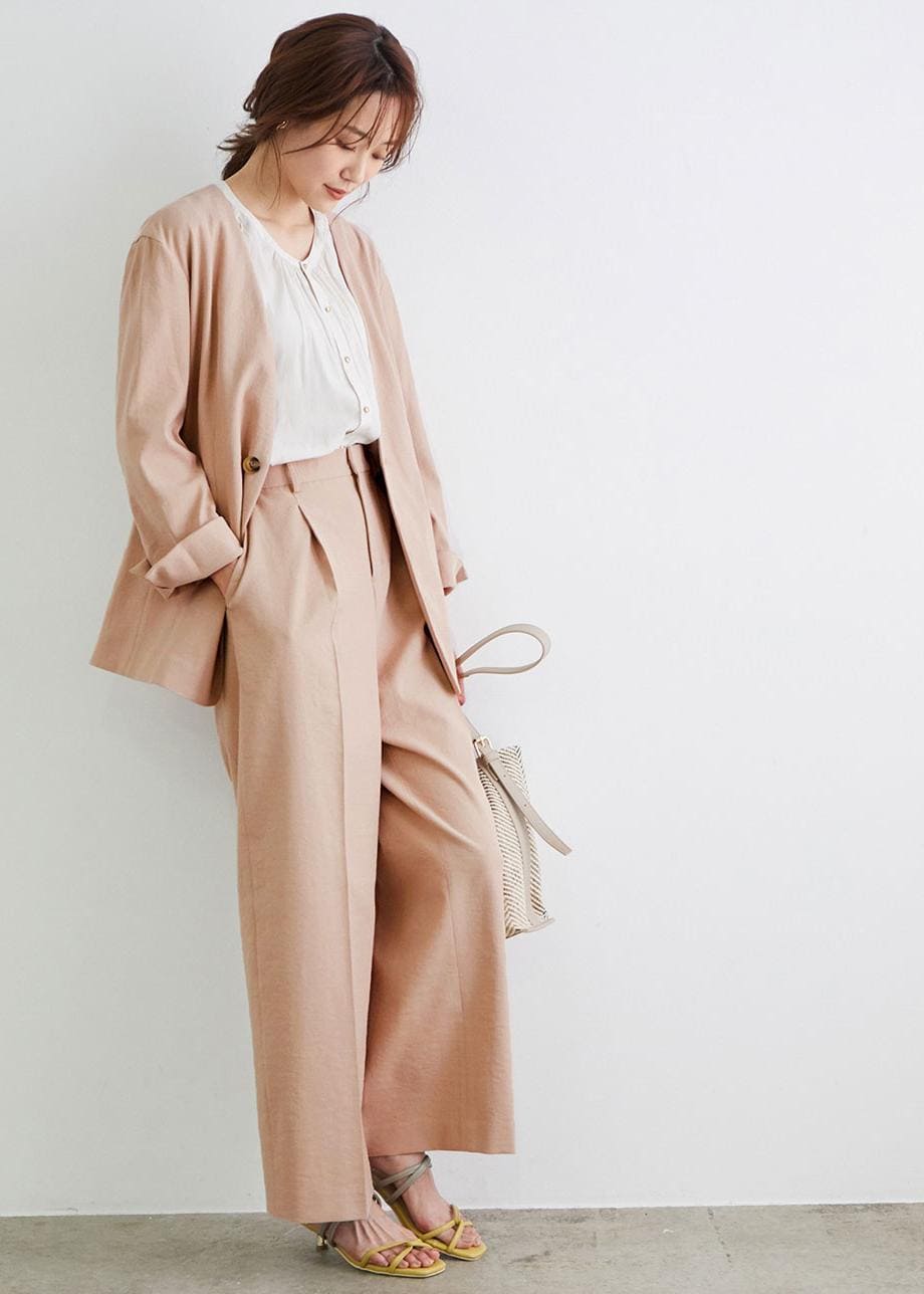 ナチュラルなピンクなので、セットアップで着ても派手に見えません。