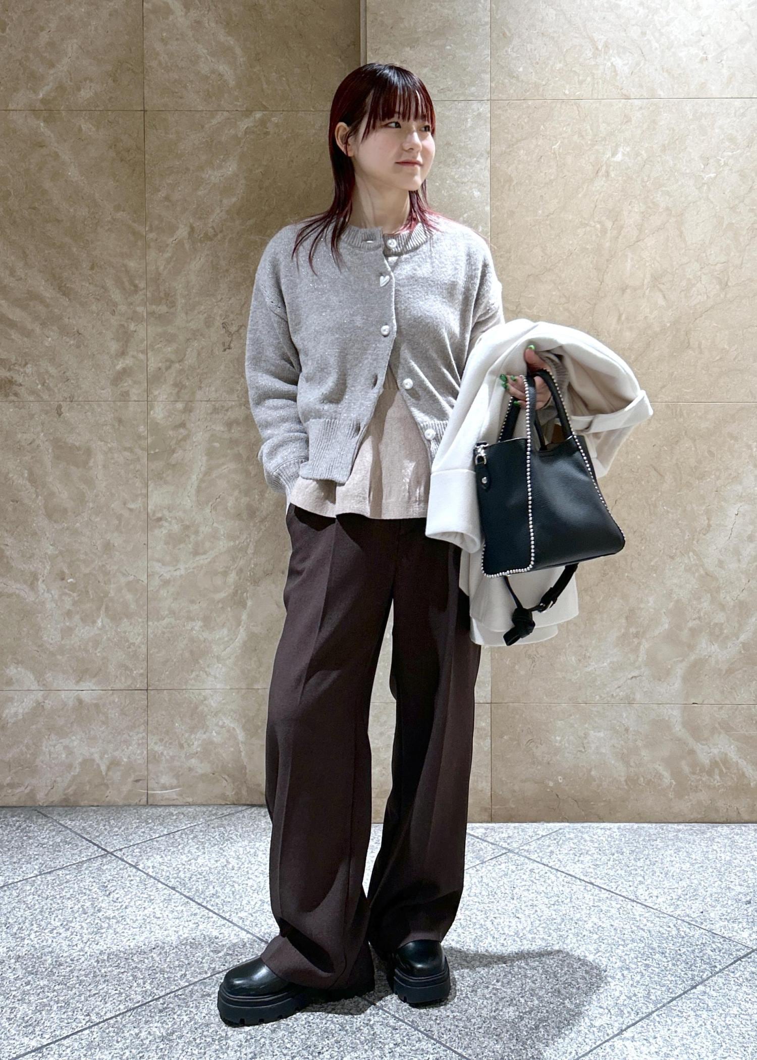 ブラウスはウエストがキュッとXラインになるデザインなので、ワイドパンツなどのゆるめのボトムと合わせても可愛く決まると思います!✨