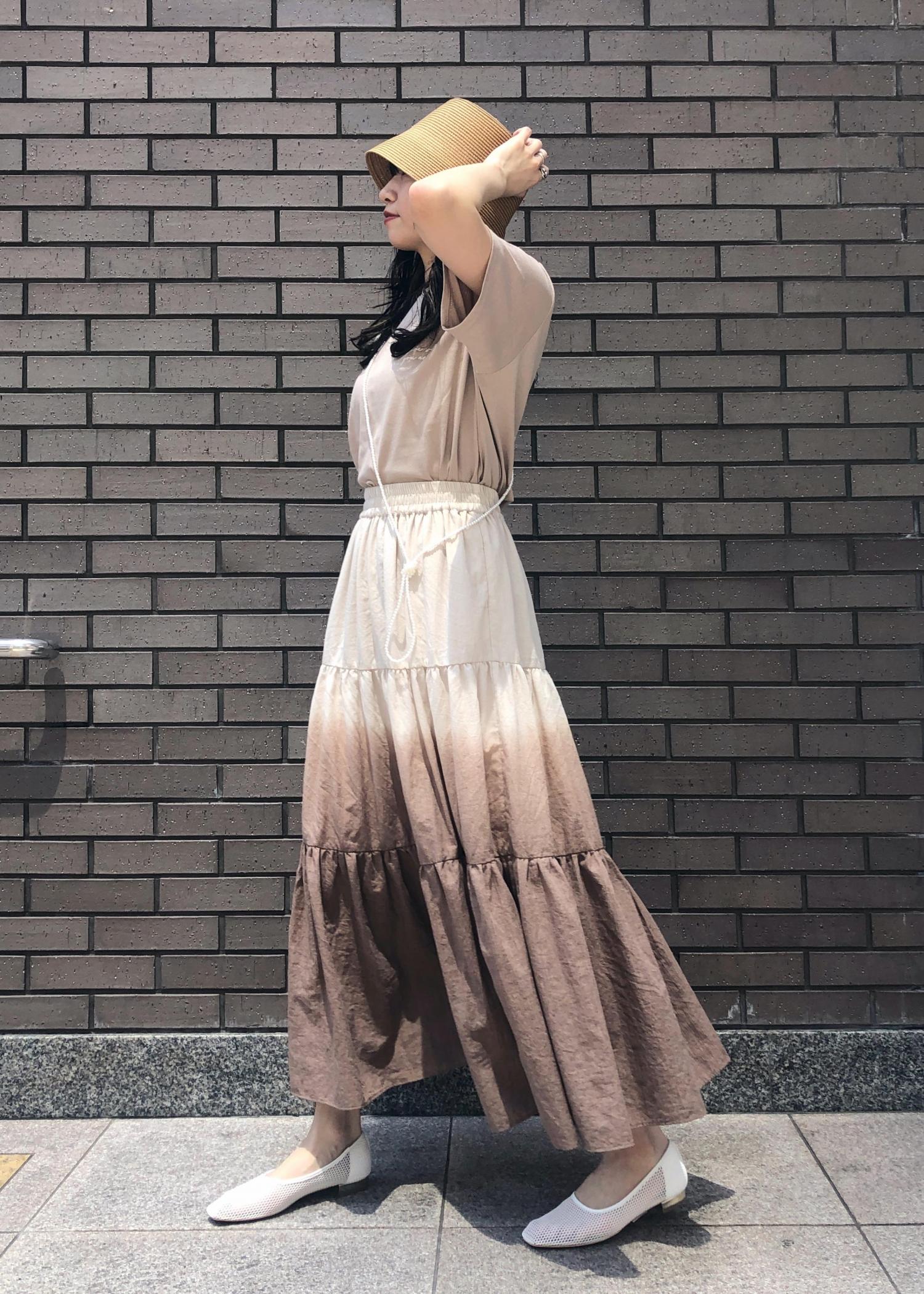 ティアードのデザインで、たっぷりなギャザーが可愛いロングスカート。