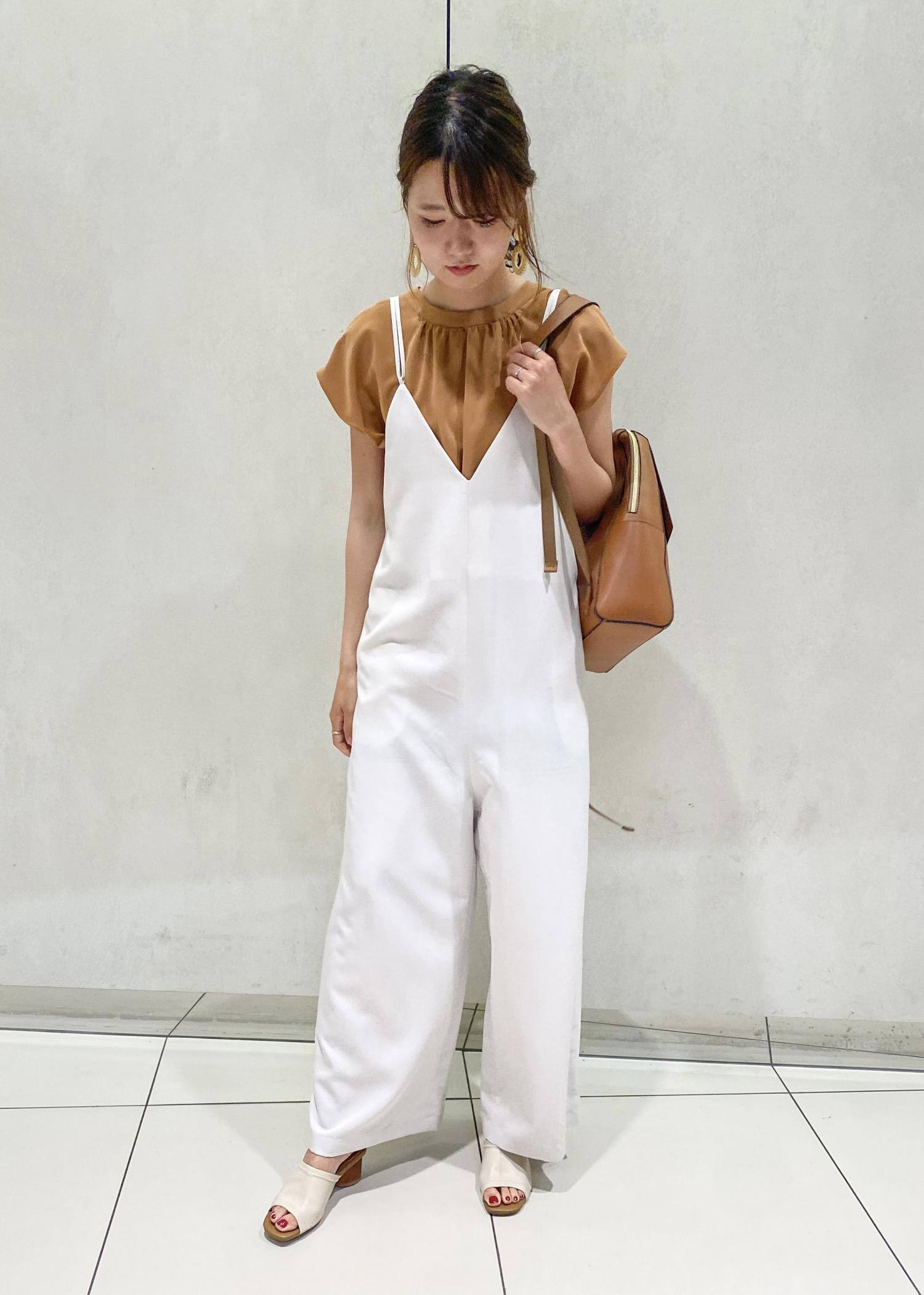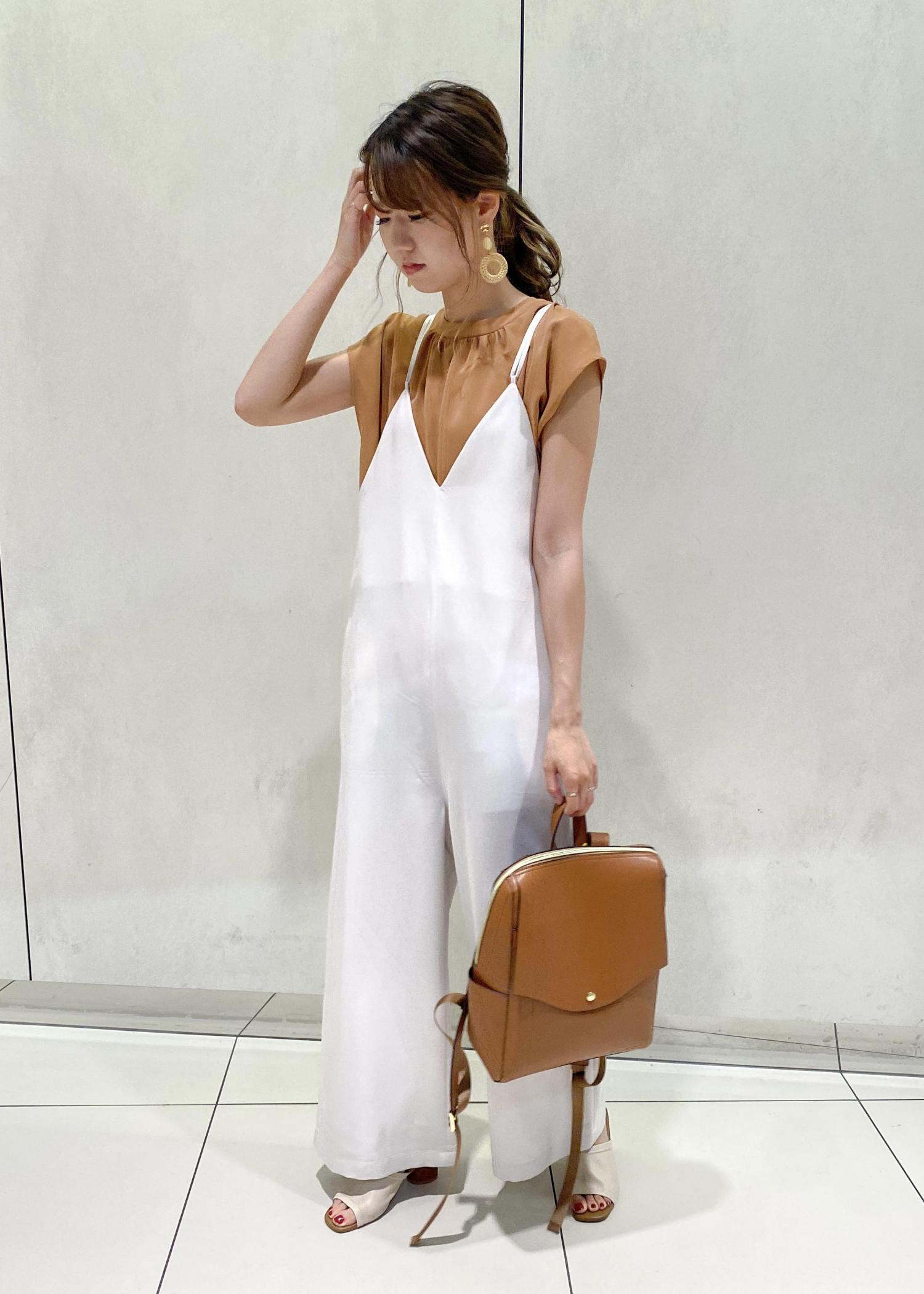 少し幼くなりやすいオールインワンですが、Wストラップのキャミ型を合わせると一気に大人styleに♪