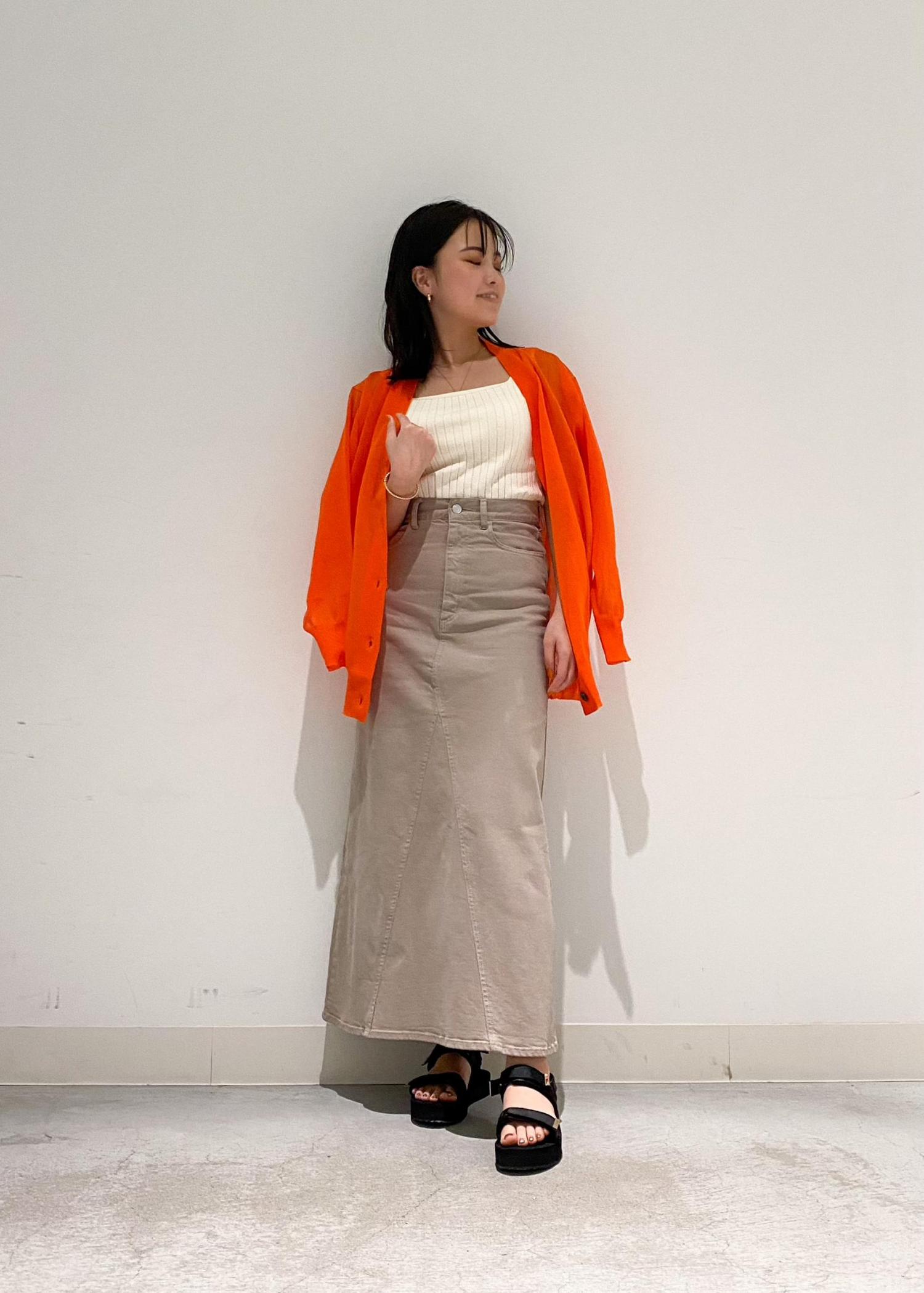 デニムスカートで大人カジュアルに
