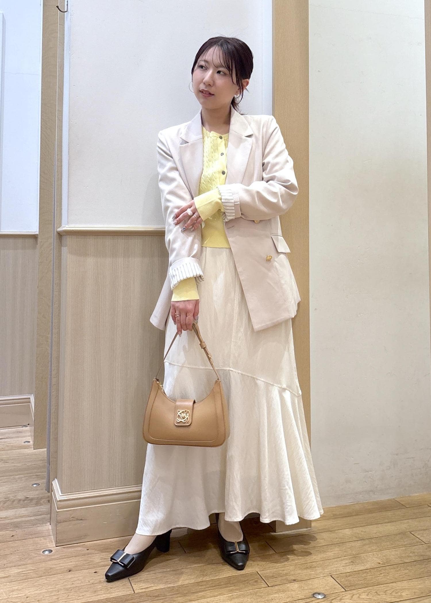 カラーが綺麗なティアードワンピースをシンプルにスタイリングしてみました。
