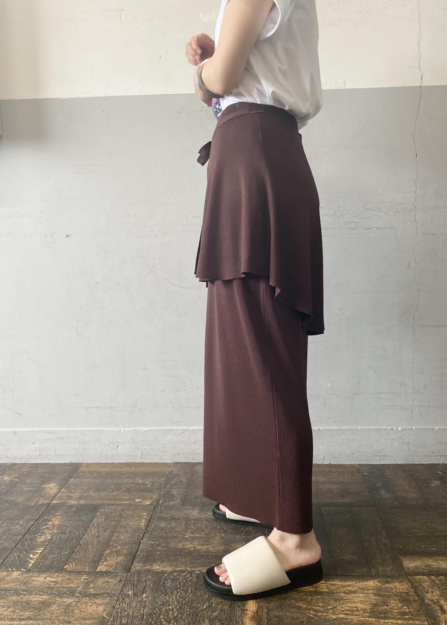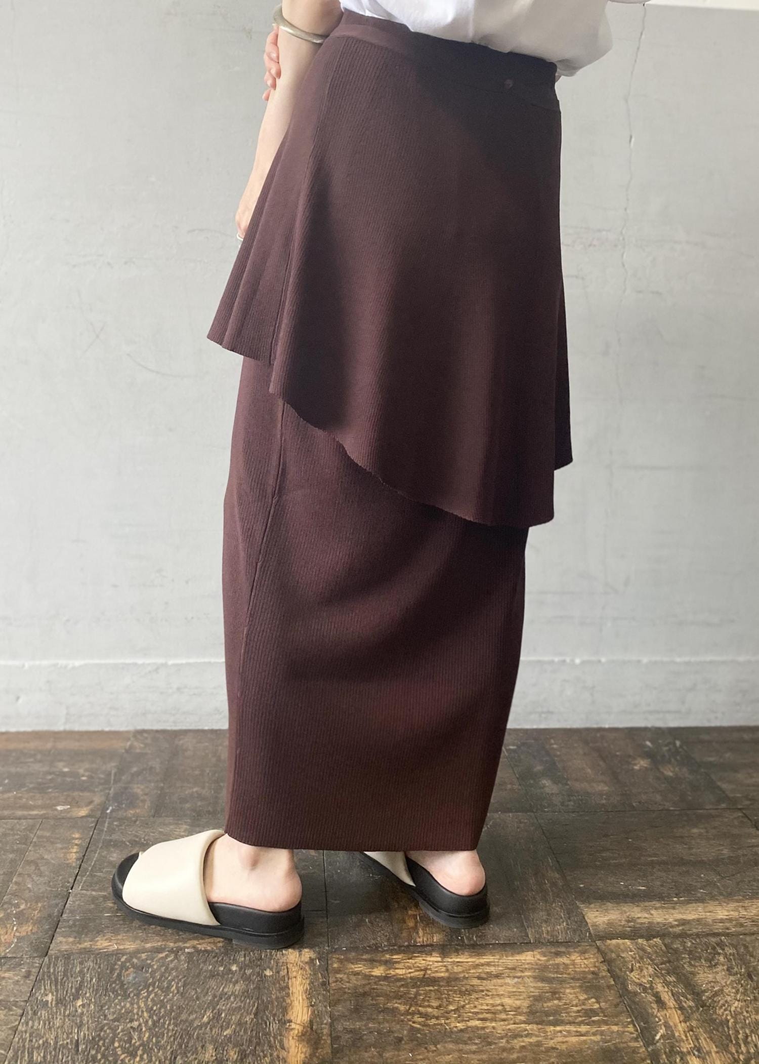もちろんラッフル部分は取り外し可能なので、シンプルなタイトスカートとしてもお使い頂ける2WAYタイプ!