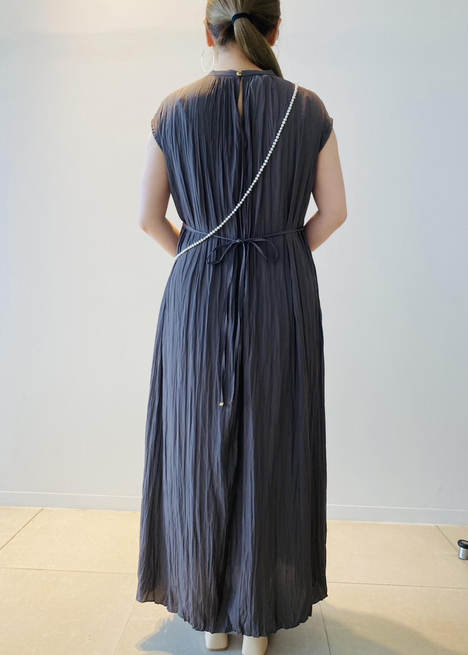 胸元のシャーリングと後ろリボンで、広がりすぎず、すっきりしたシルエットで着て頂けます!