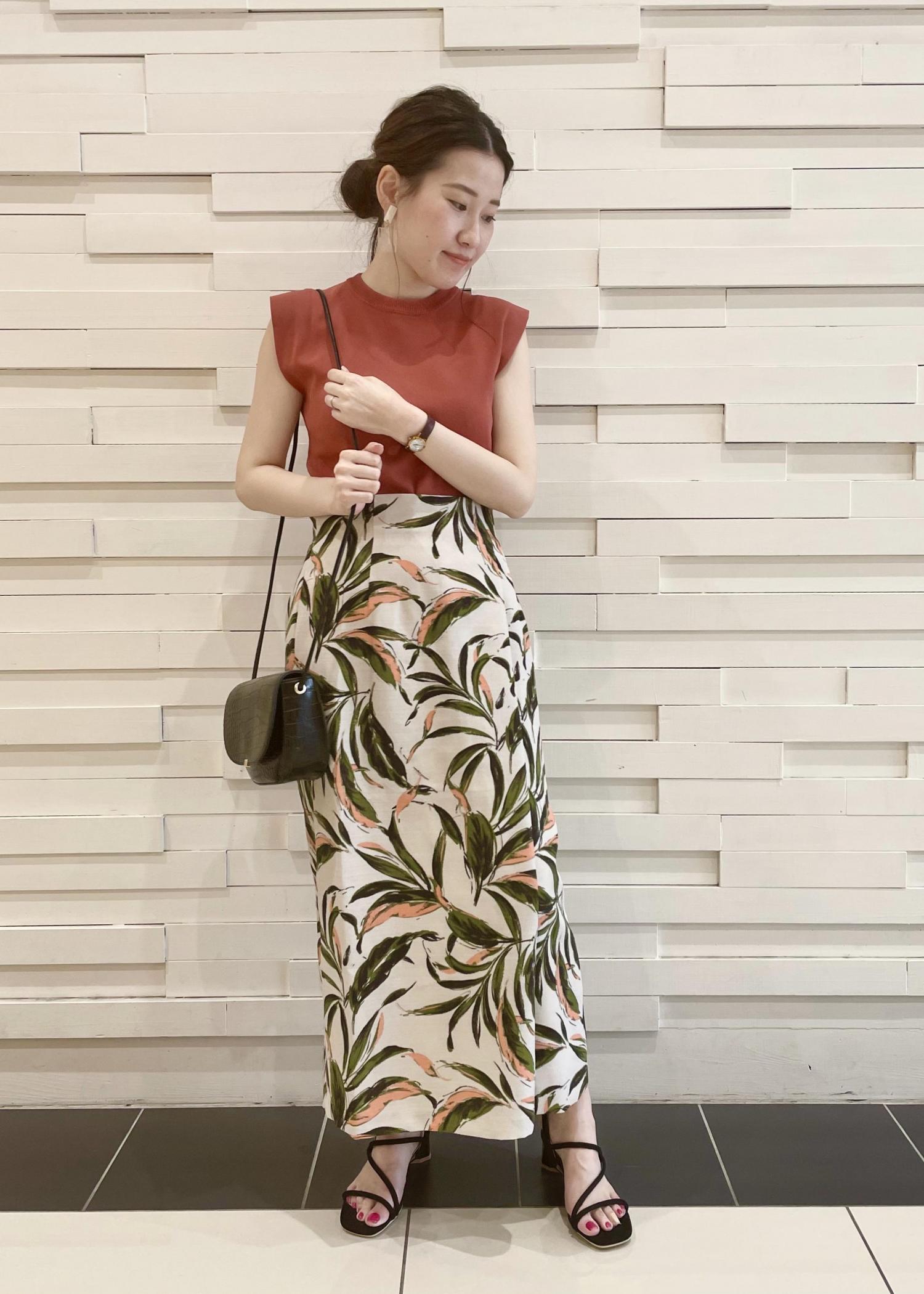 1枚で着映えするスカートなのでお出かけ用にはもちろんおすすめですが、シンプルなトップスを選んでオンスタイルにもおすすめです。
