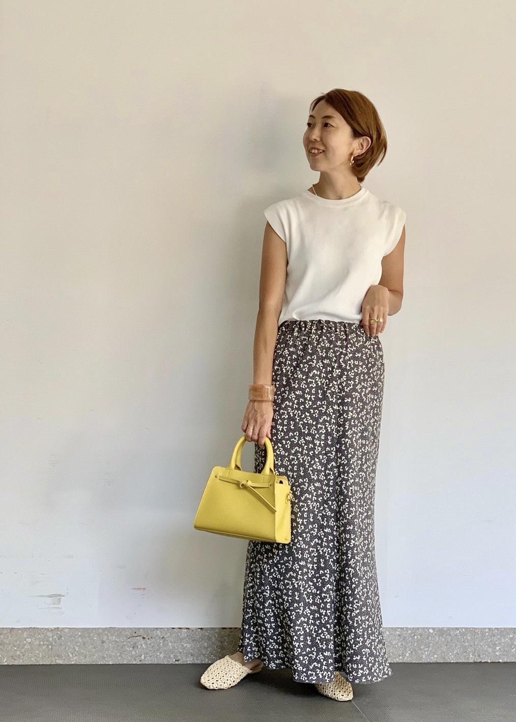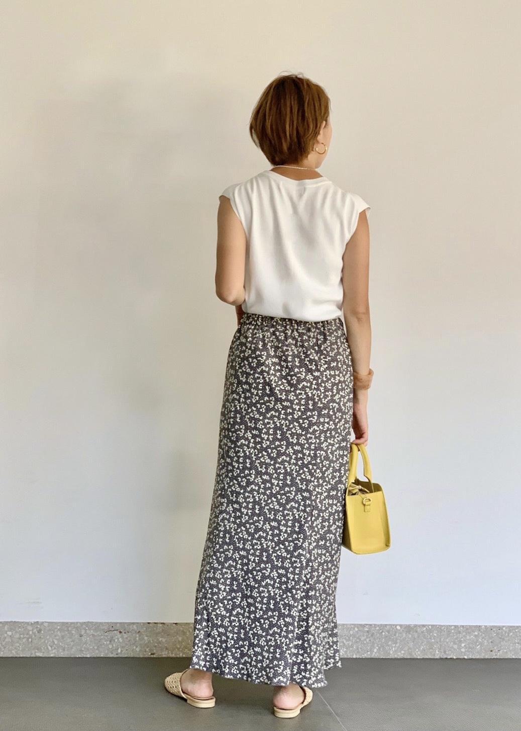 着丈調節のできるフラワーマーメイドマキシスカート