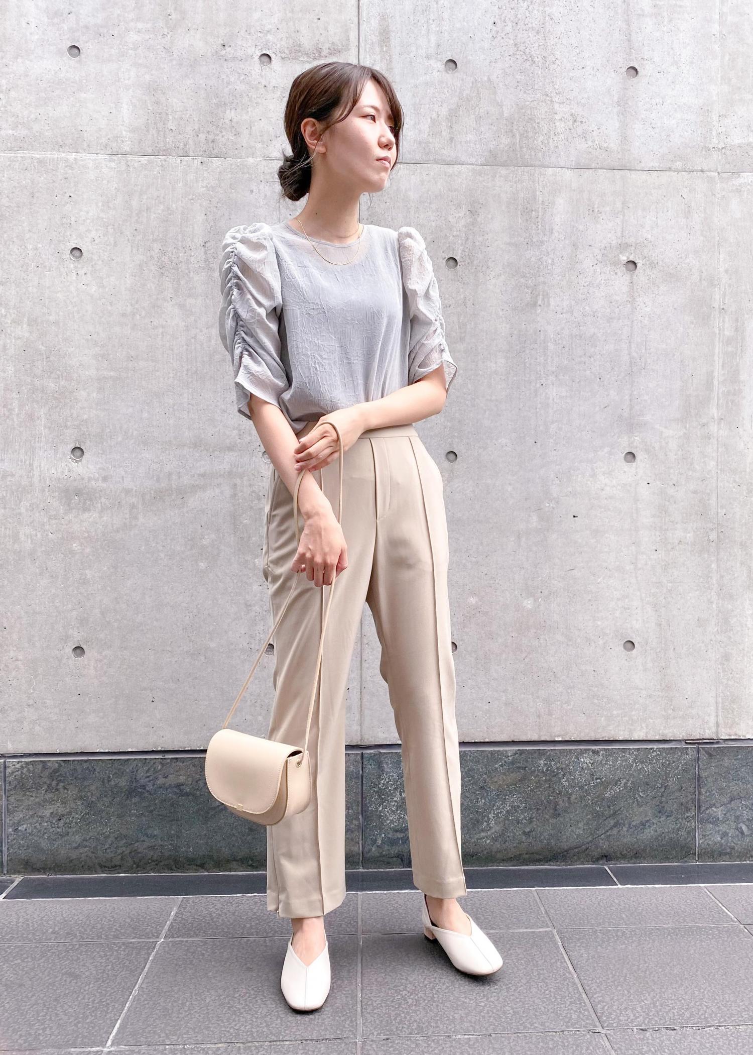 今回は大人気のラク美パンツのベージュを合わせたコーディネートを紹介します♪