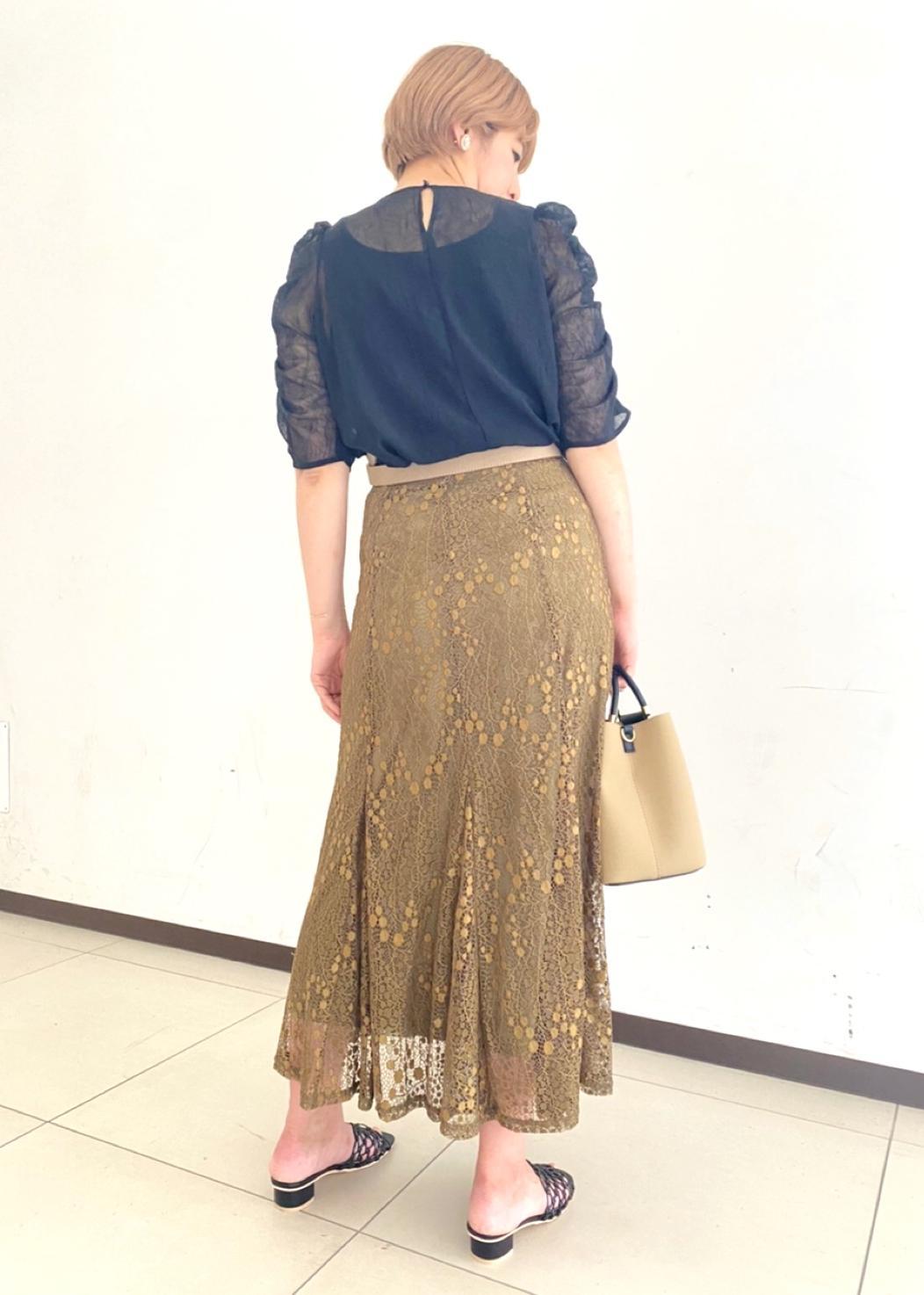 シアー感が柔らかな印象のトップスに上品なレースマーメイドを合わせて甘くなりすぎない大人フェミニンスタイリングにしてみました。