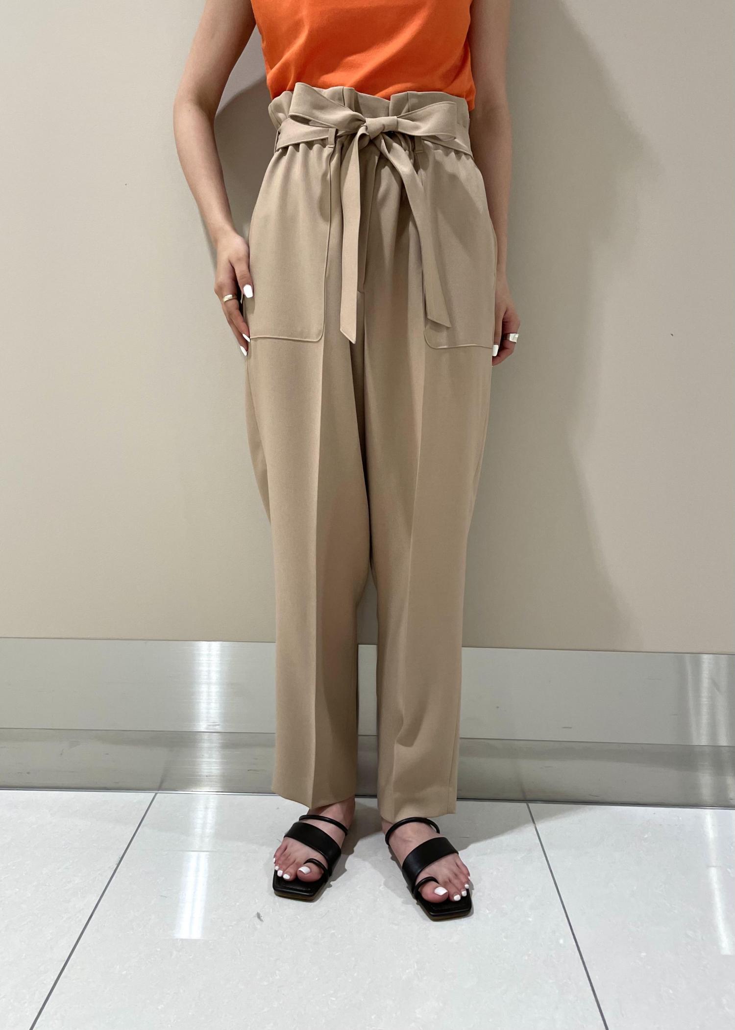 パンツはハイウエストですがウエストゴムなので窮屈感なく、ヒップ周りはゆとりがあり裾に向けて細くなるデザインで体のラインを拾わず、簡単にスタイルアップが叶います✨