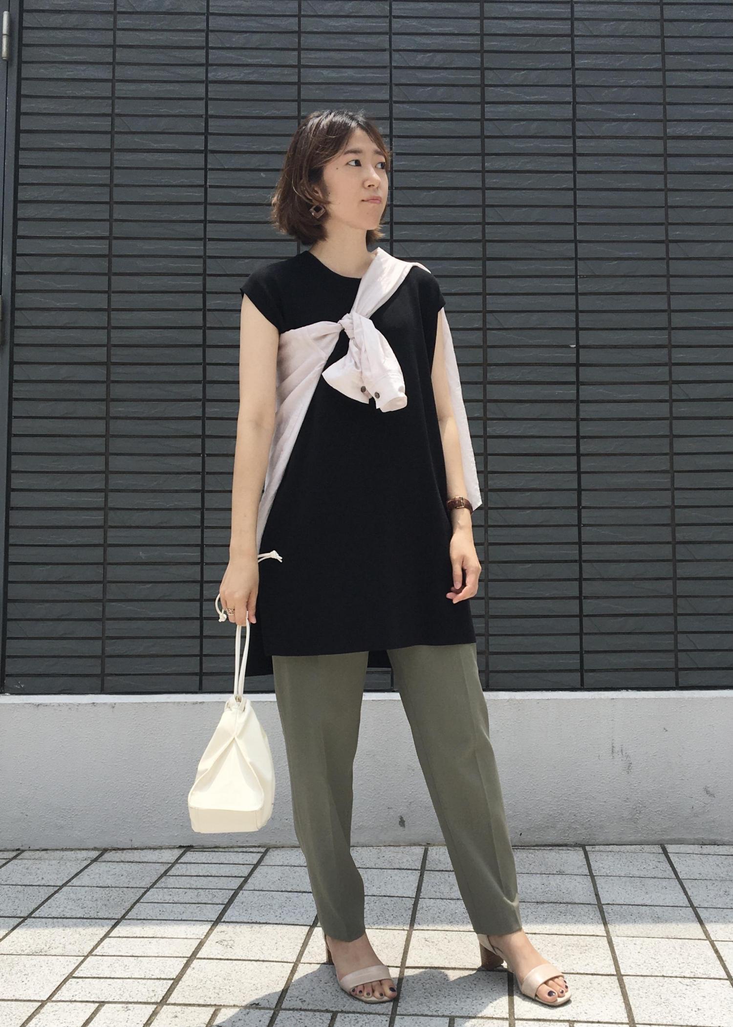 ただ羽織るだけよりも、たすき掛けするだけでワンポイントになるのでオススメです。