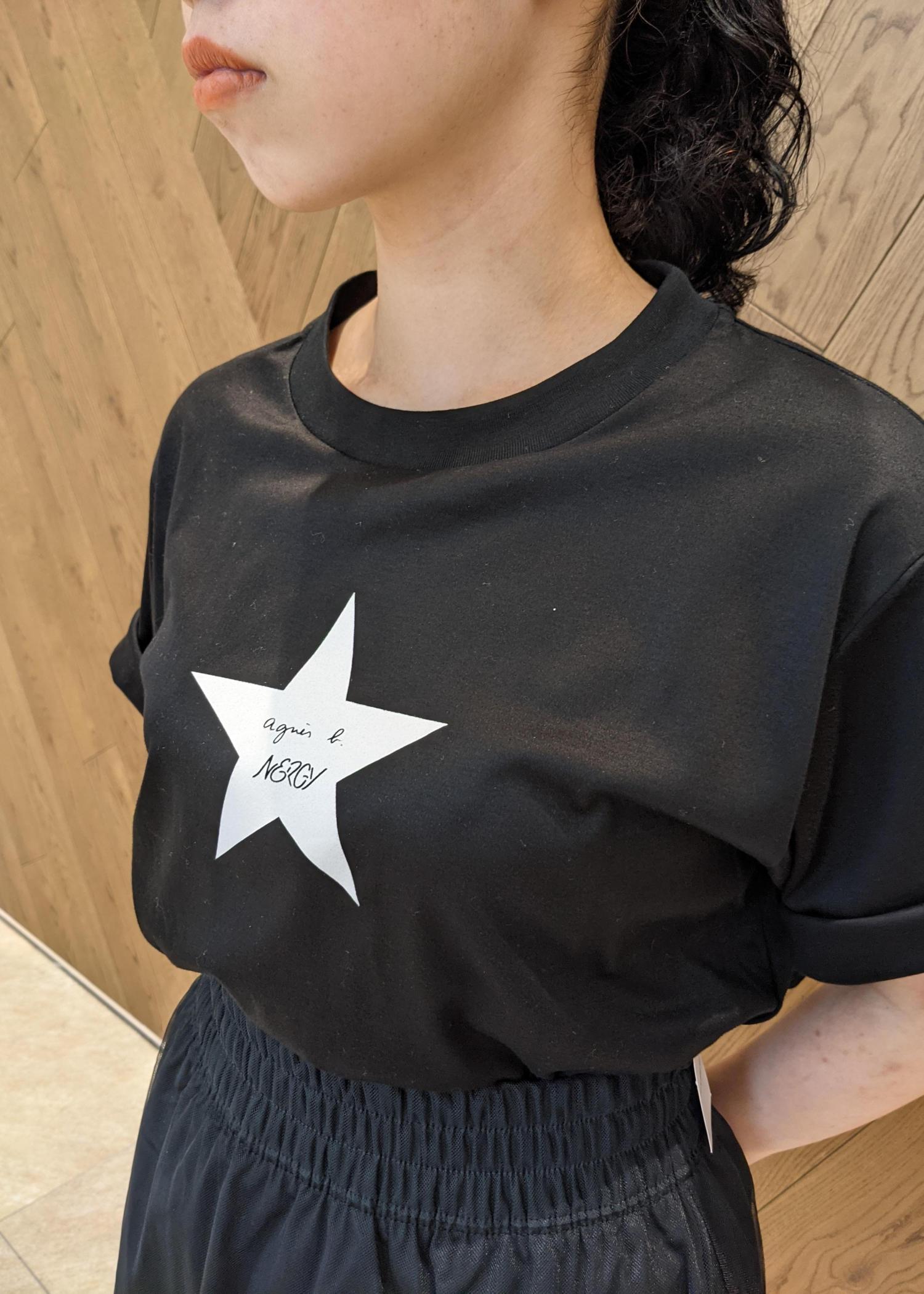 トップスはアニエスベー×ナージーのコラボアイテム。