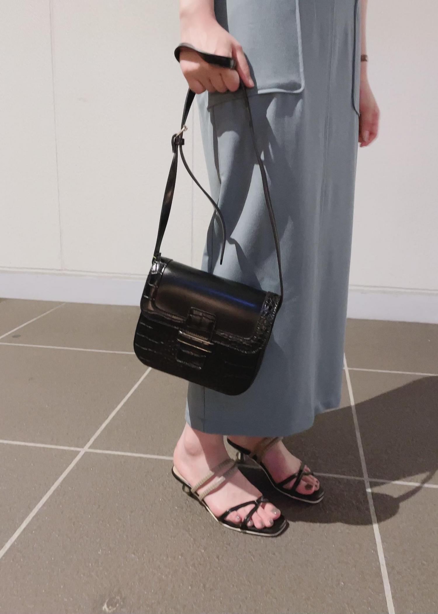 小物を黒にすることでカラーにメリハリがつき、大人っぽいコーディネートになります。