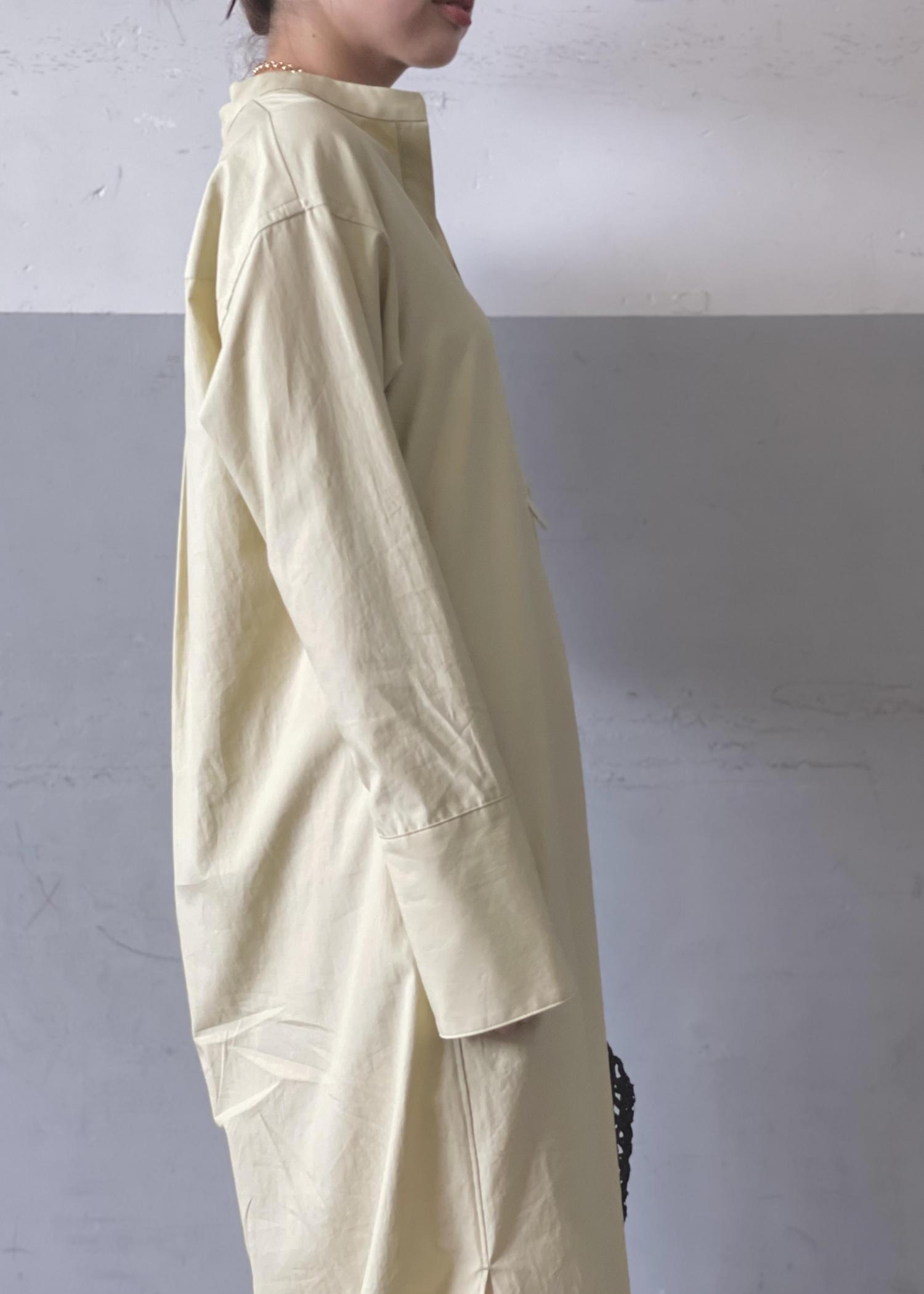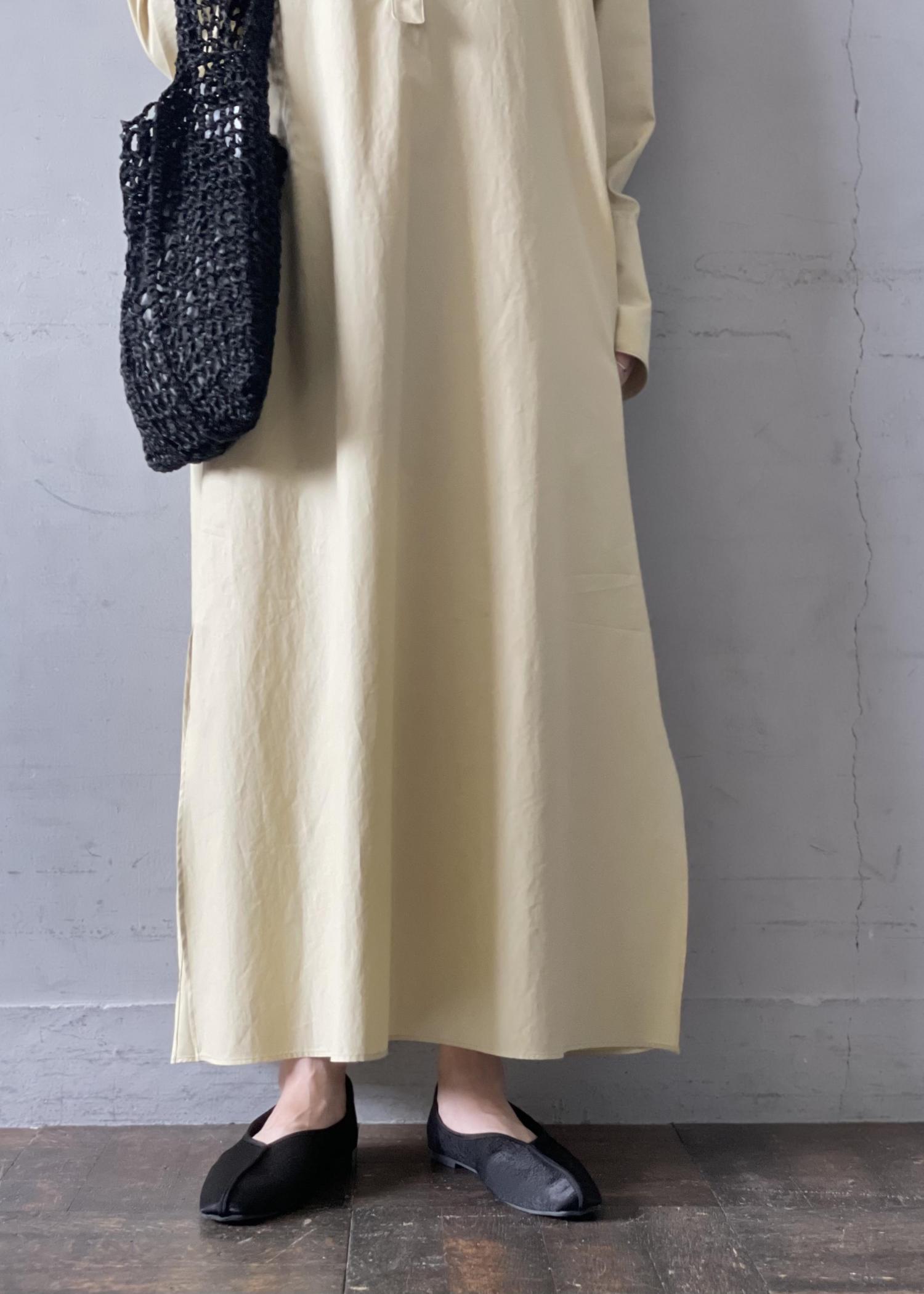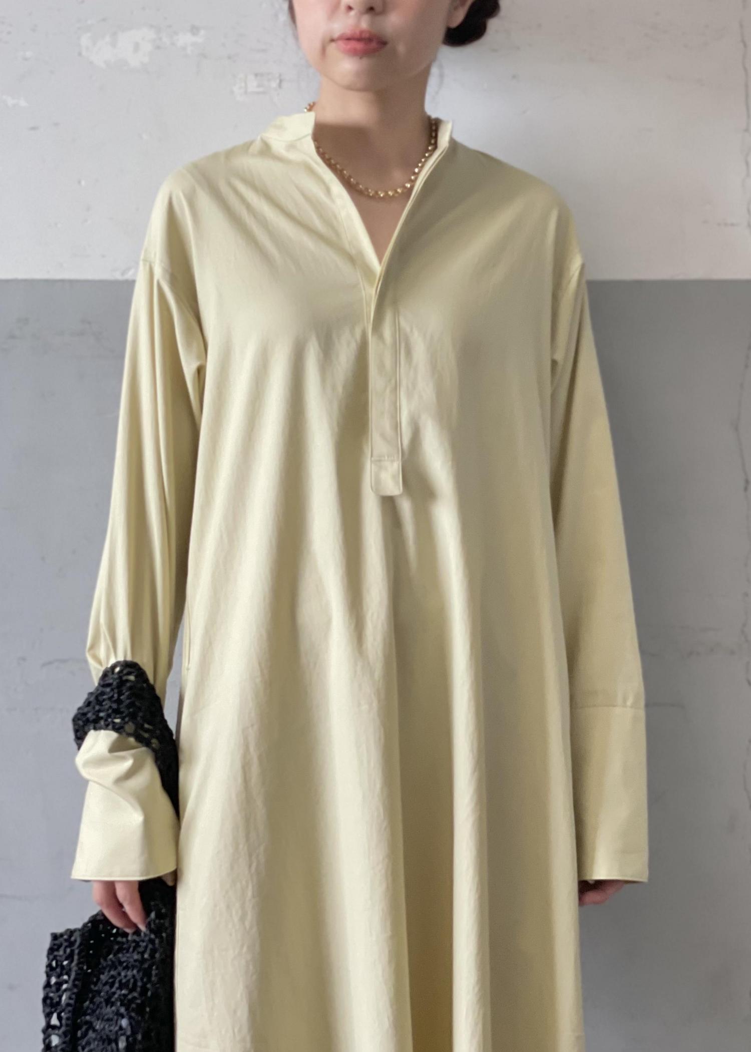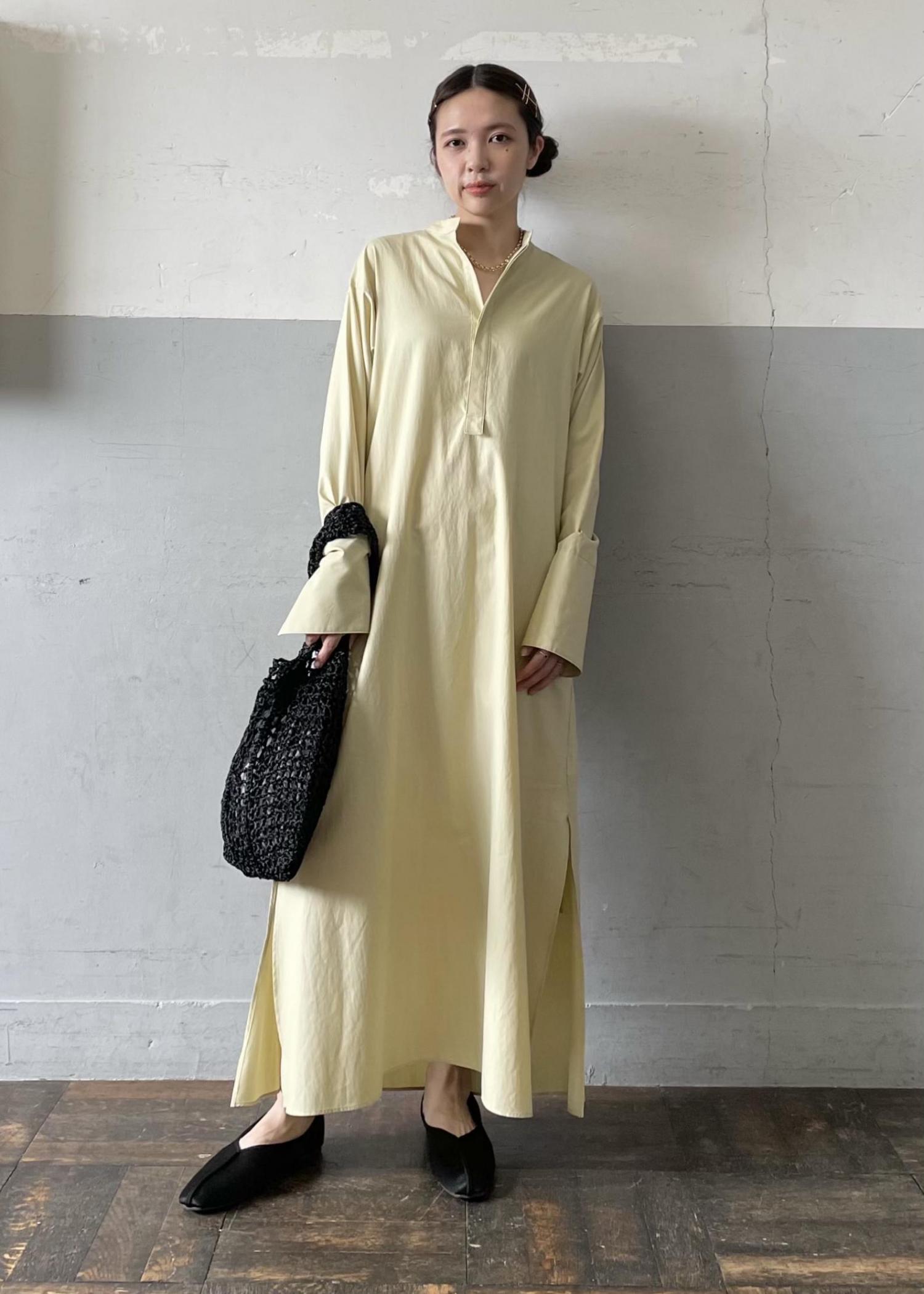 シンプルなシャツワンピースだからこそ、生地感や仕立ての良さが際立つ一着。