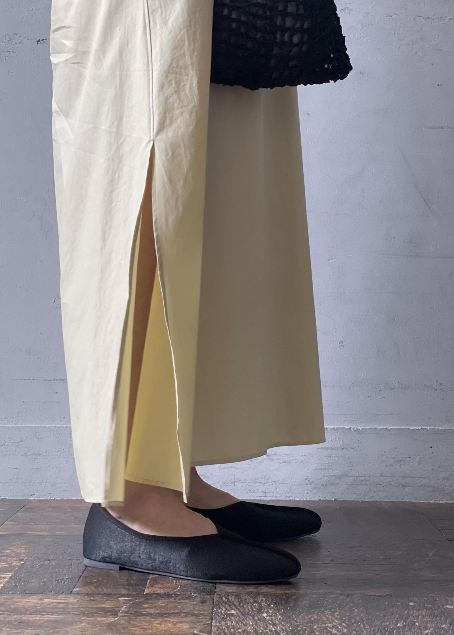 さり気ないAラインで女性らしいさもありつつ、落ち感があるので着膨れ感もナシ。