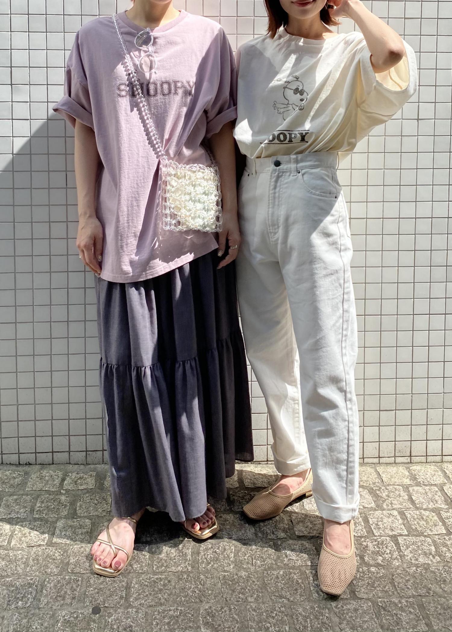 【PEANUTSコラボ】のカットソーは少しレトロなプリントで大人っぽく見えるデザインです。