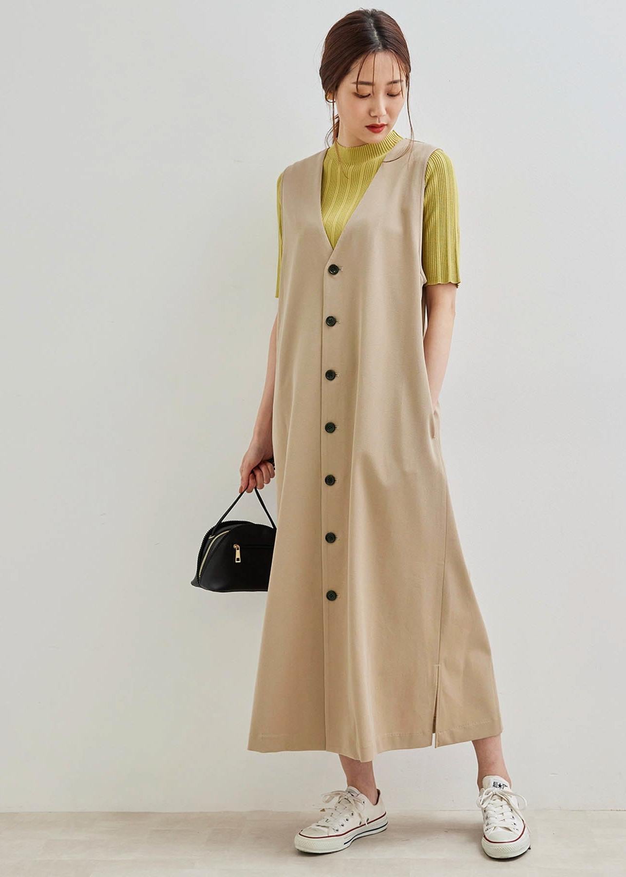 コンパクトなシルエットのトップスはワンピースのインナーとしても最適です。