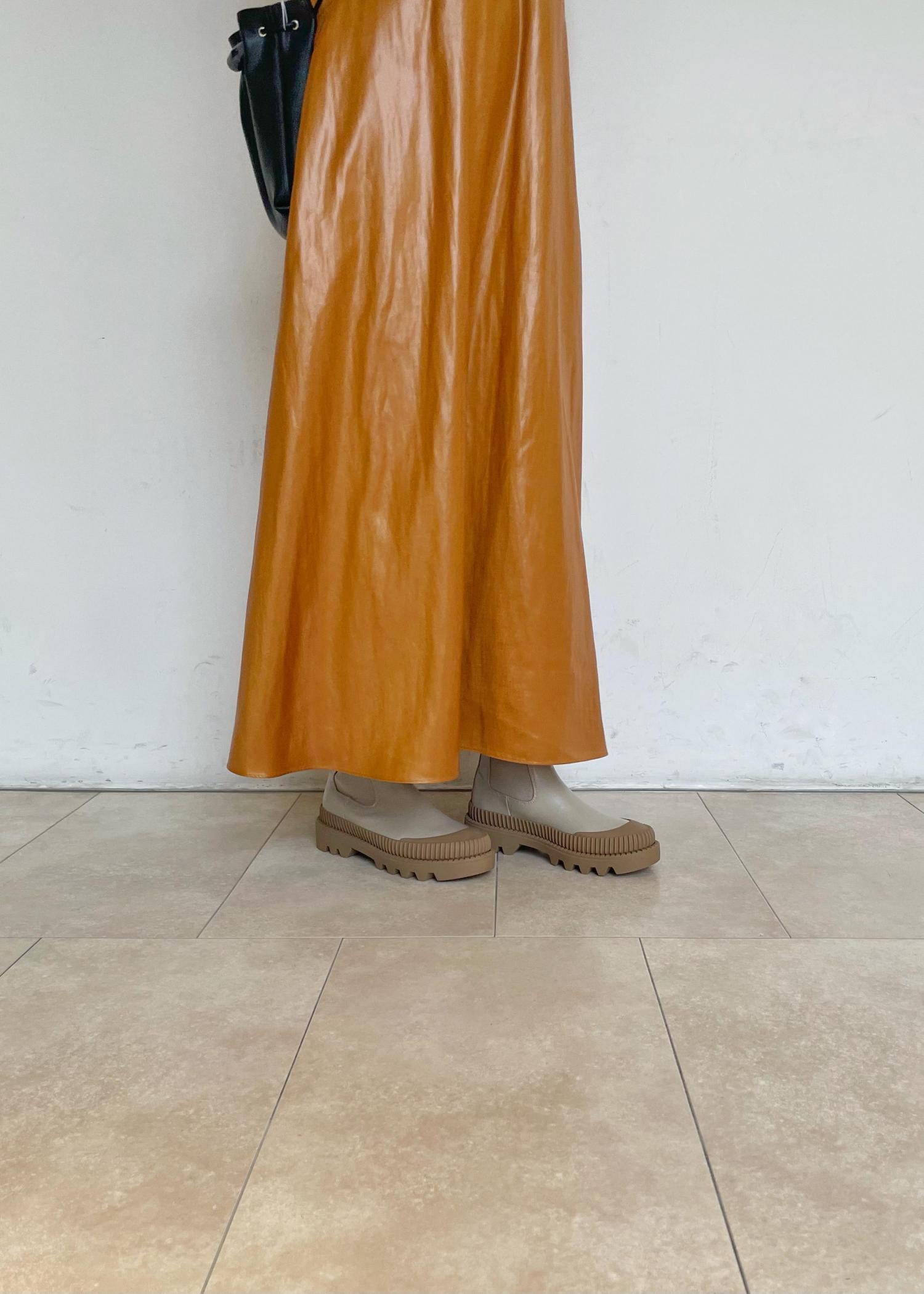 全体を暖色でまとめて、晩夏まで着られるコーデにしました。