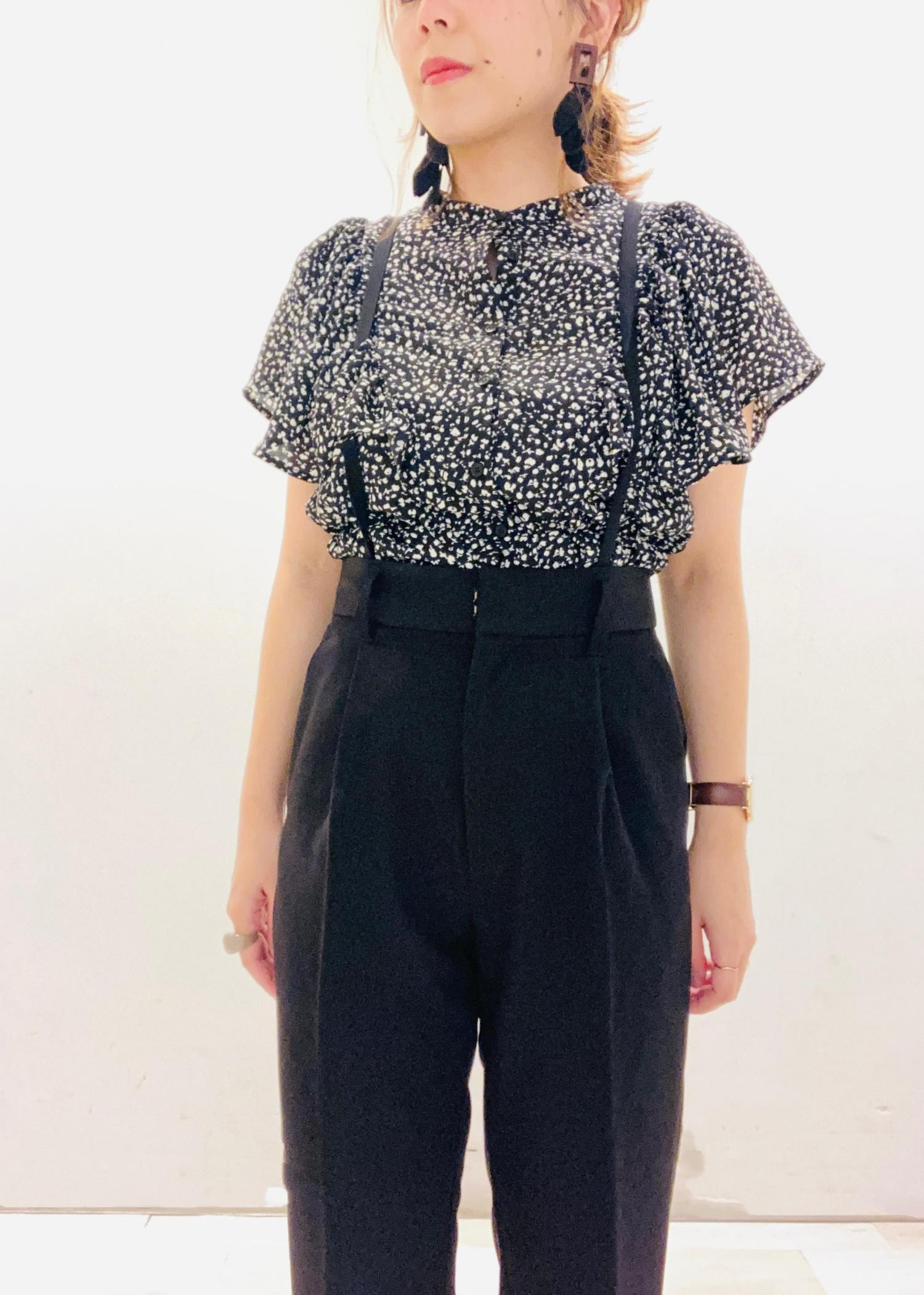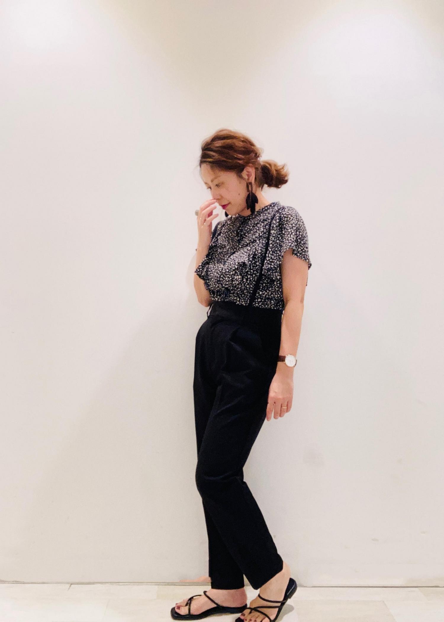 中花柄ブラウスは同素材のスカート(BVC31040)とセットアップで着るとお仕事モードに早変わり⭐︎
