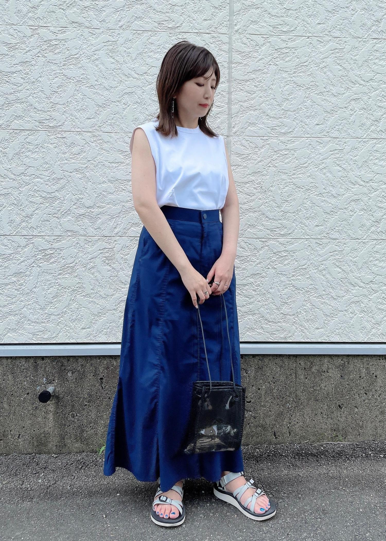 フレア感を抑えたシルエットなので、可愛くなり過ぎず、ネイビーの大人っぽさが綺麗見えします。