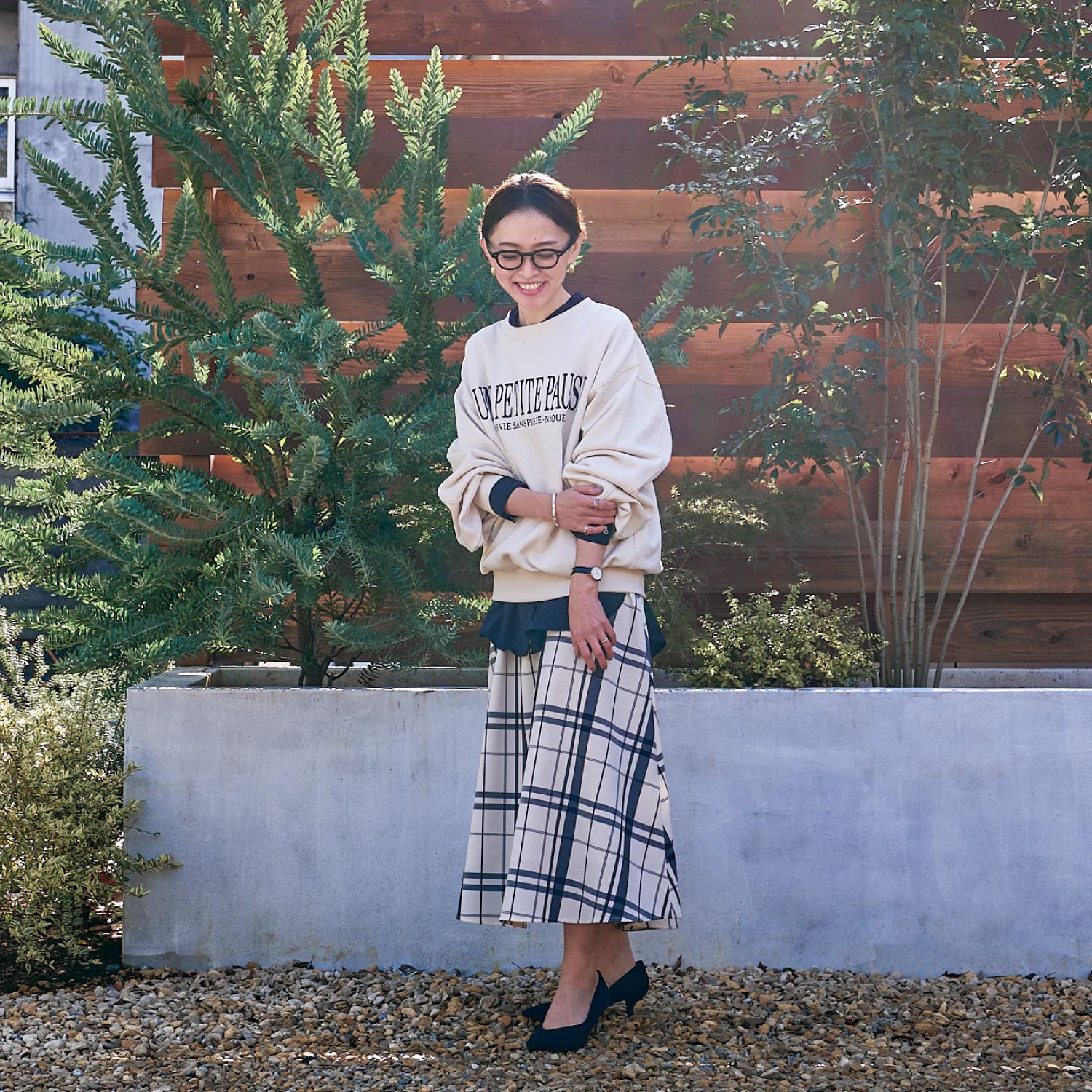 シャツをスウェットとレイヤードして着回してみました。このときの私の気分は“寒さに無理せずおしゃれをしたい”です。