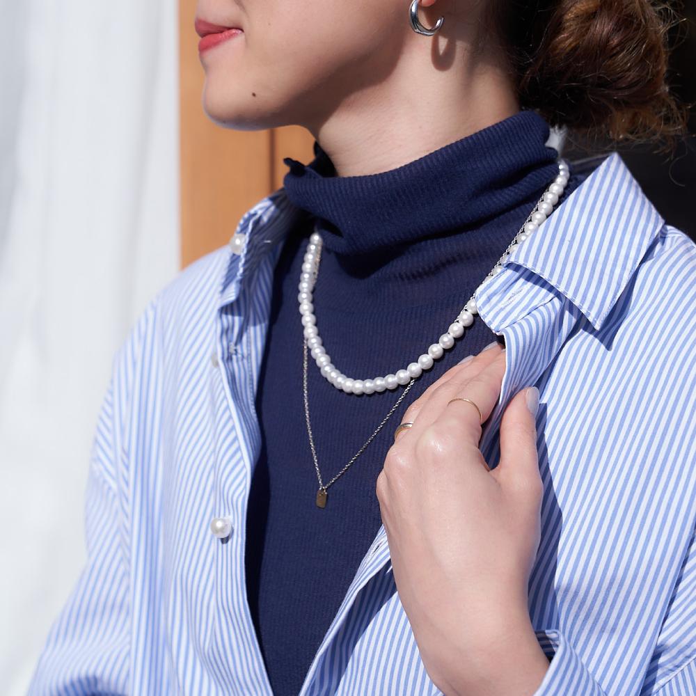 15年ほど前に購入したプチペンダントを、定番のパールネックレスと重ね付けして胸元を華やかに。”今日は着飾りたいな”という気分の日にはアクセサリーの重ね付けで簡単にいつもの着こなしをアップデートすることができます。