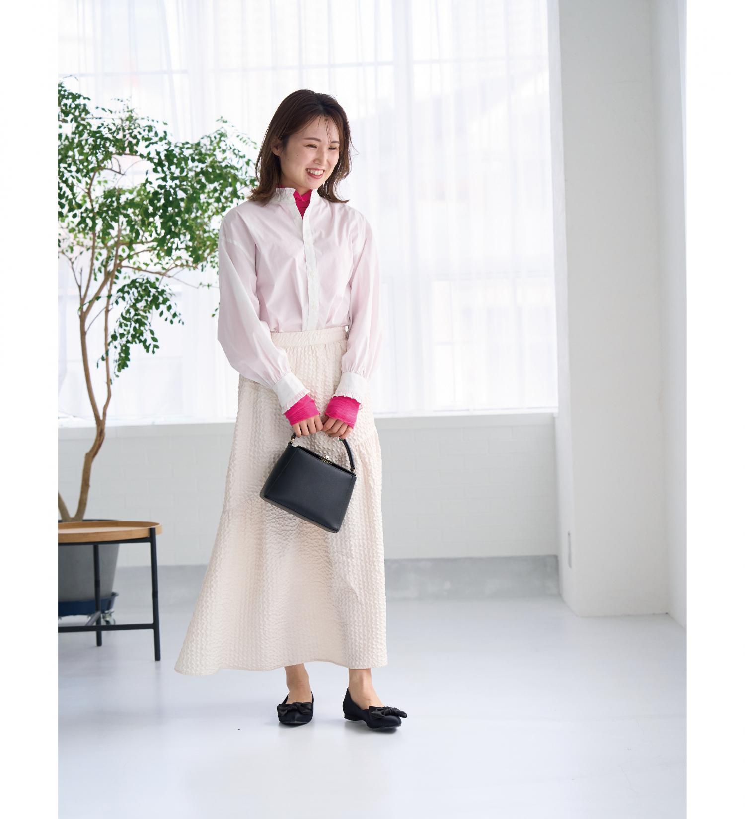 程よいトレンド要素や女性らしさを意識し、ちゃんとかわいく、今の気分にフィットする着回しポイントをご紹介しますね。