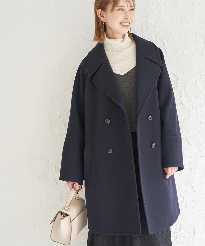 袖丈が長すぎると、なんだかだらしなく見えたり、幼い印象に見えがちに。こちらのPコートは袖丈の折り返し部分に多めに表地を使っているので、袖を捲っても裏地が見えないのがポイント。