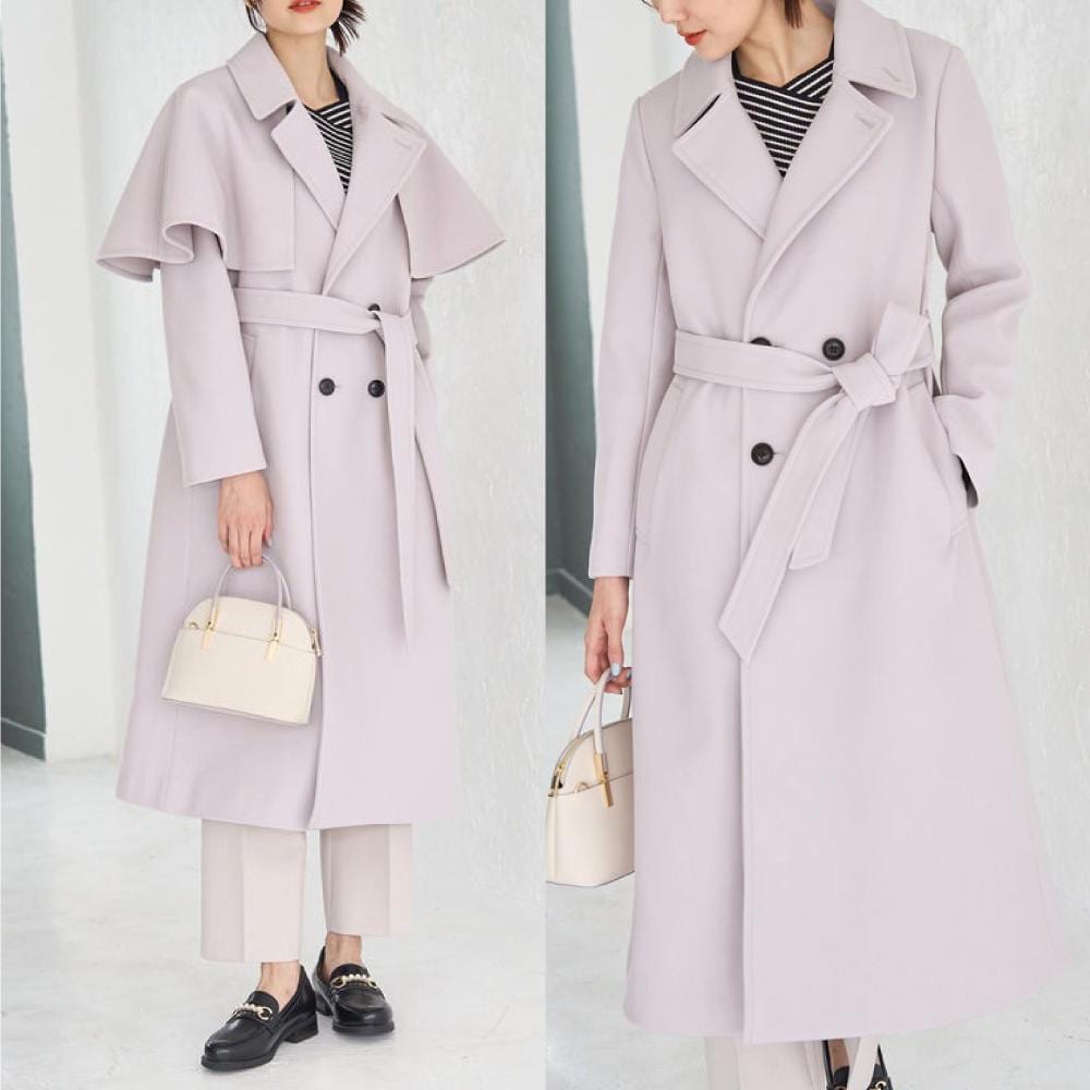 ✔︎ケープを取り外して、ベーシックなベルテッドコートにもなる2WAY仕様