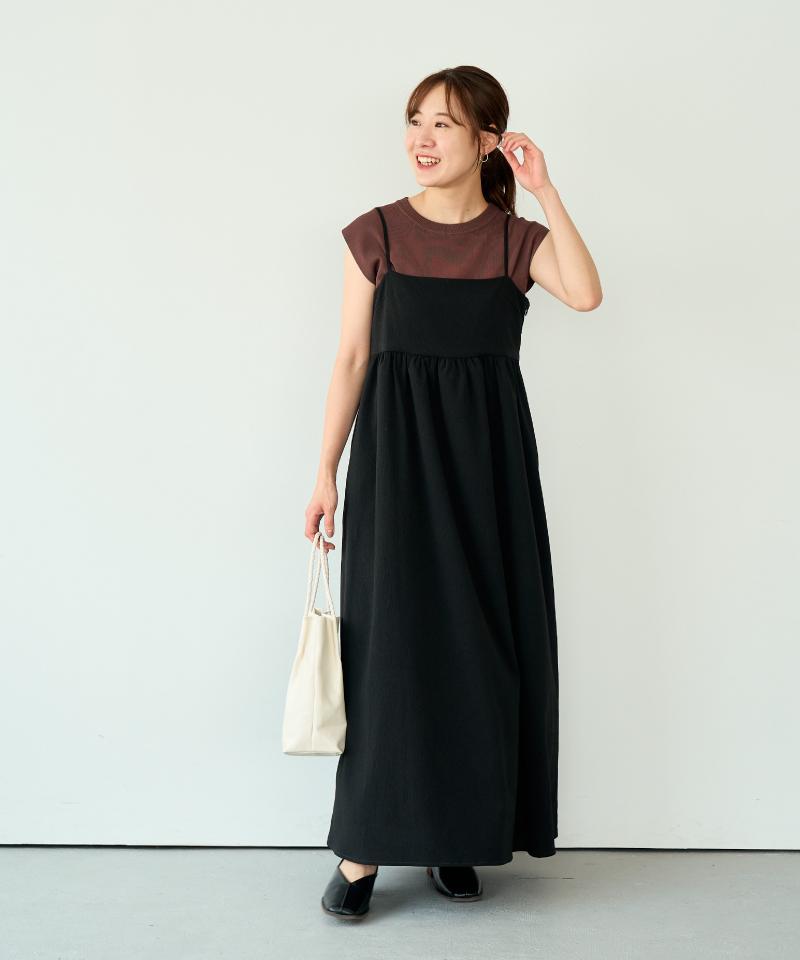 キャミワンピやサロペットのインナーとしても合わせやすいゼロスリーブニット。