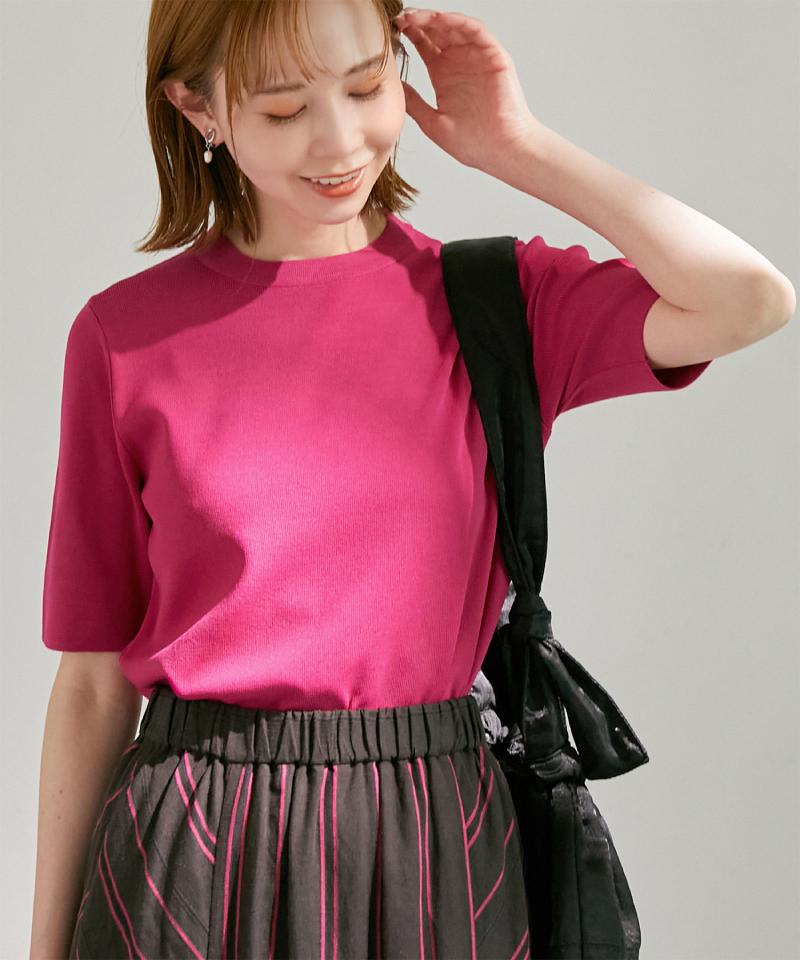 まず、トップスは二の腕が隠れるハーフスリーブプルオーバーを。
