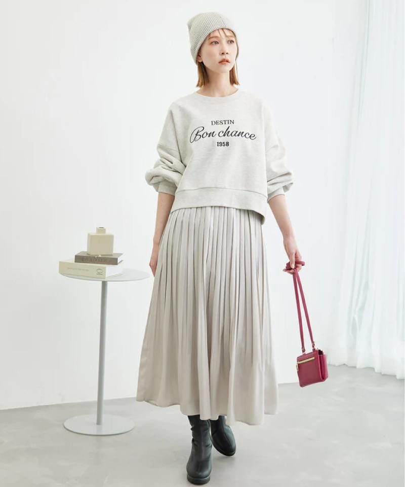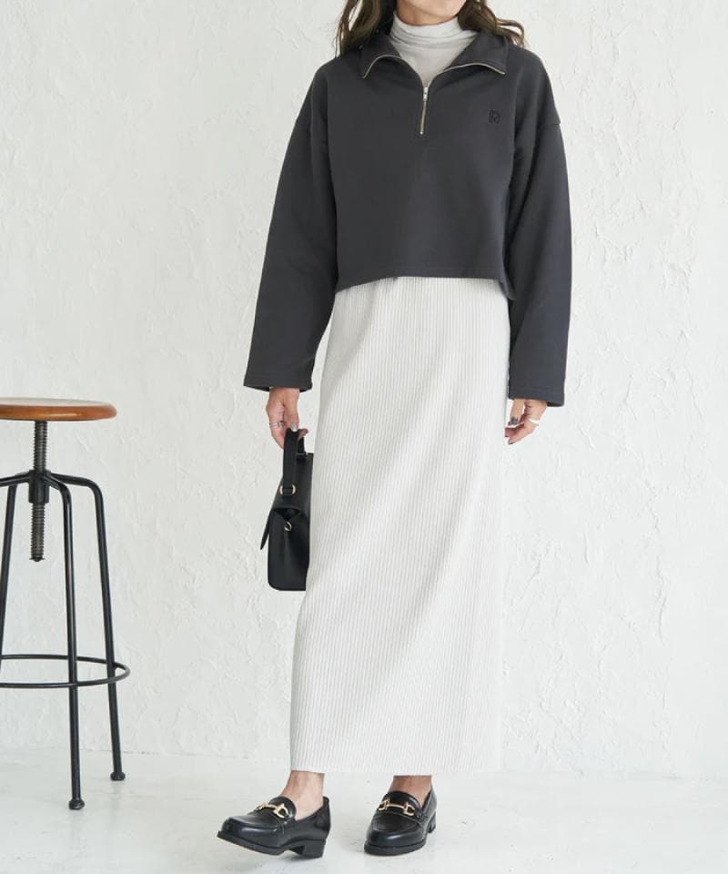 スウェットといえば、着丈が長めでゆったりとしたオーバーサイズが多いですが、華奢なウェーブタイプがそのまま着ると着られた印象になりがち・・・。