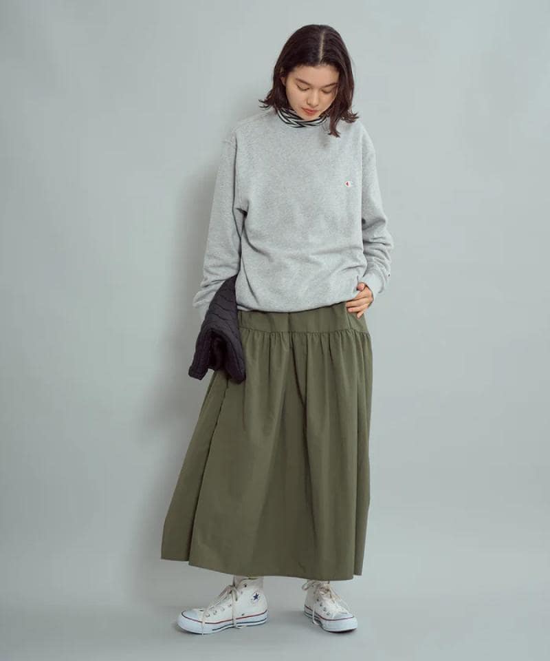 デニム、チノパン、カーゴパンツなどカジュアルなパンツはもちろん、マキシ丈のスカートも◎
