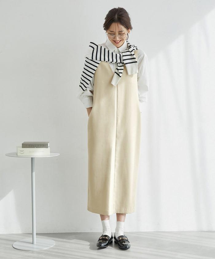 タイトなIラインシルエットが、ストレートタイプのからだをほっそり見せてくれるジャンパースカート。