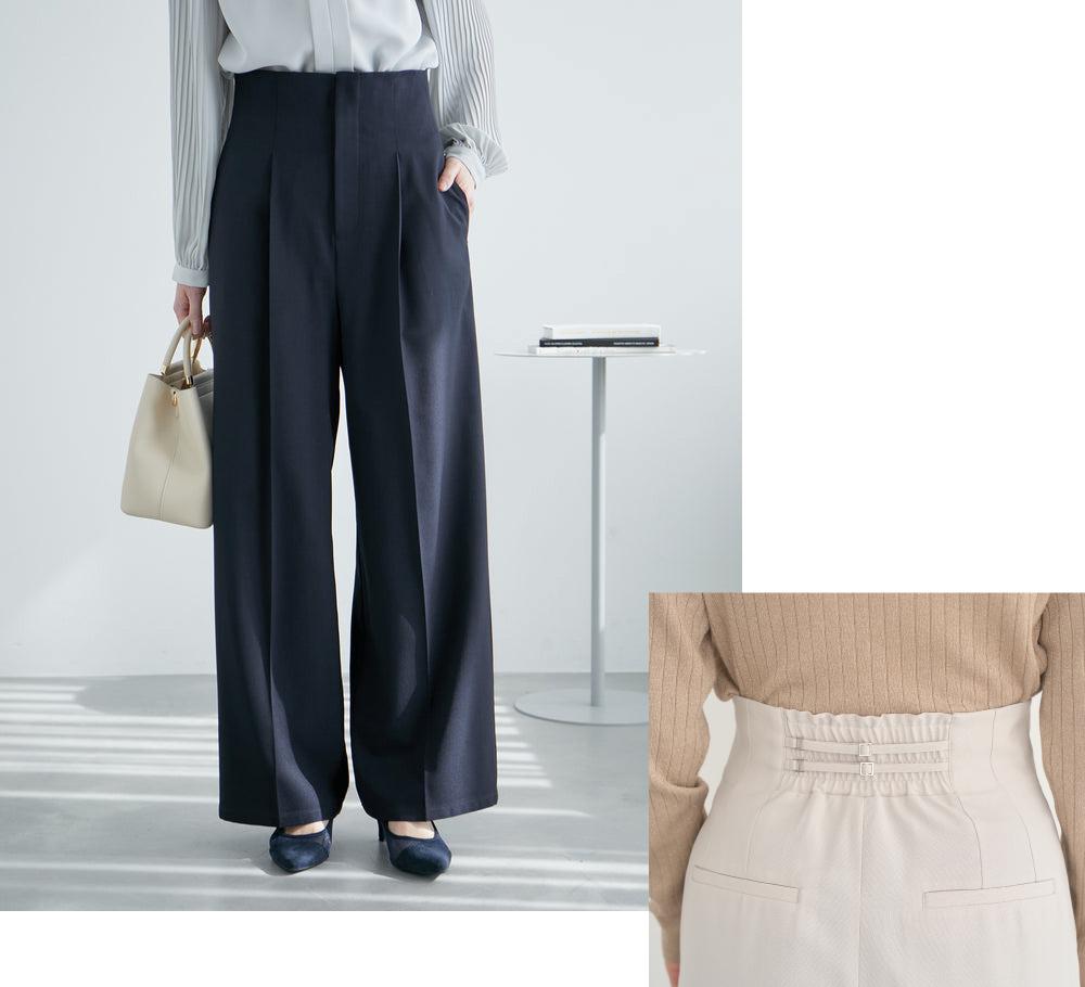 このパンツはハイウエスト、且つウエスト部分の後ろ中心がゴム使いになっていることで、ウエスト位置が高く見え、重心アップさせたいウェーブタイプの心強い味方なんです。