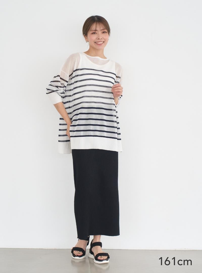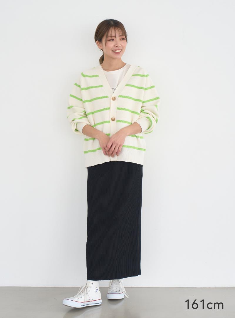 Iラインスカートは変えずに、トップスをチェンジした印象アップコーデがこちら。