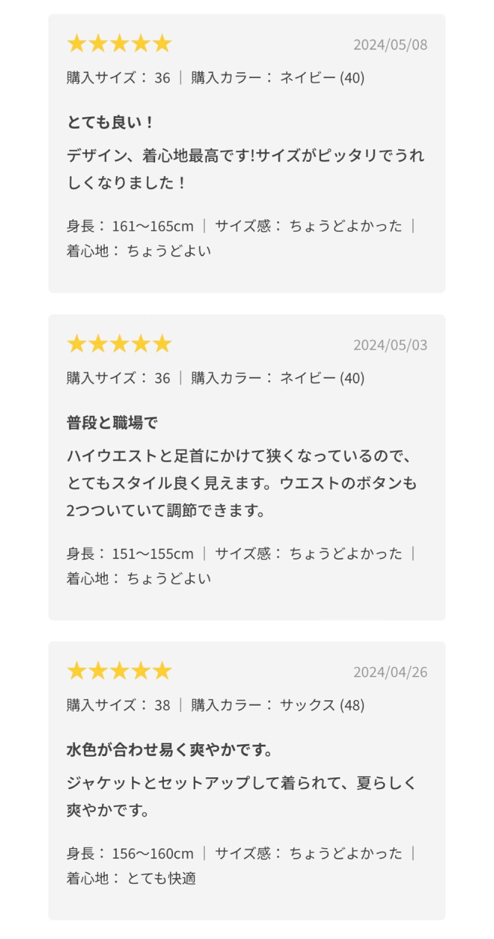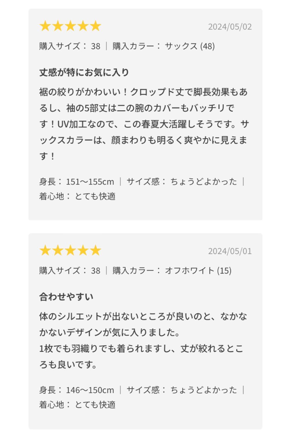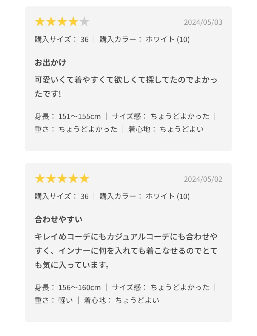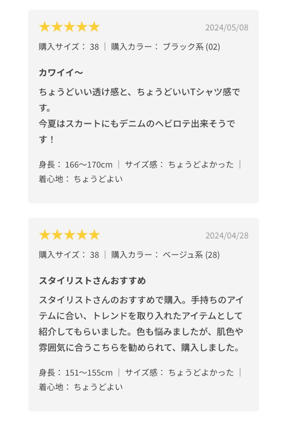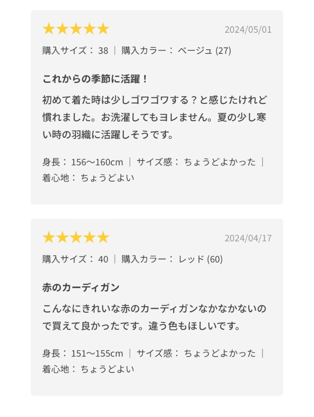 あなたの投稿するレビューも皆さまの着こなしの手助けになりますので、