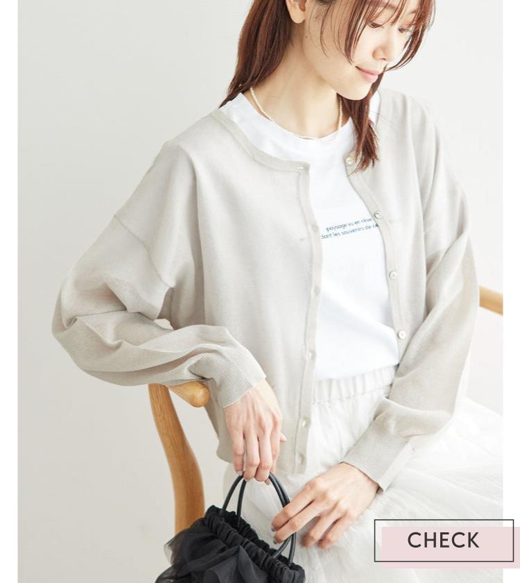 涼し気なシアー素材のクロップド丈カーディガンは、さりげなく入ったラメが上品な印象に。