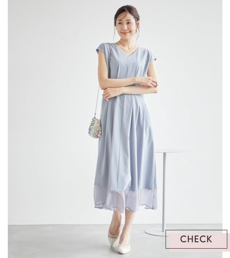 裾の透け感が軽やかさを、タック使いで美しいシルエットバランスを演出。