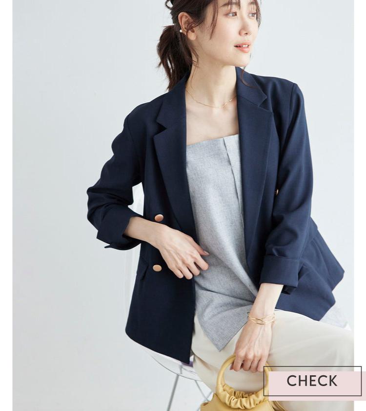 クラシカルな金ボタンジャケットは、メンズライクに着こなせるゆったりシルエット。