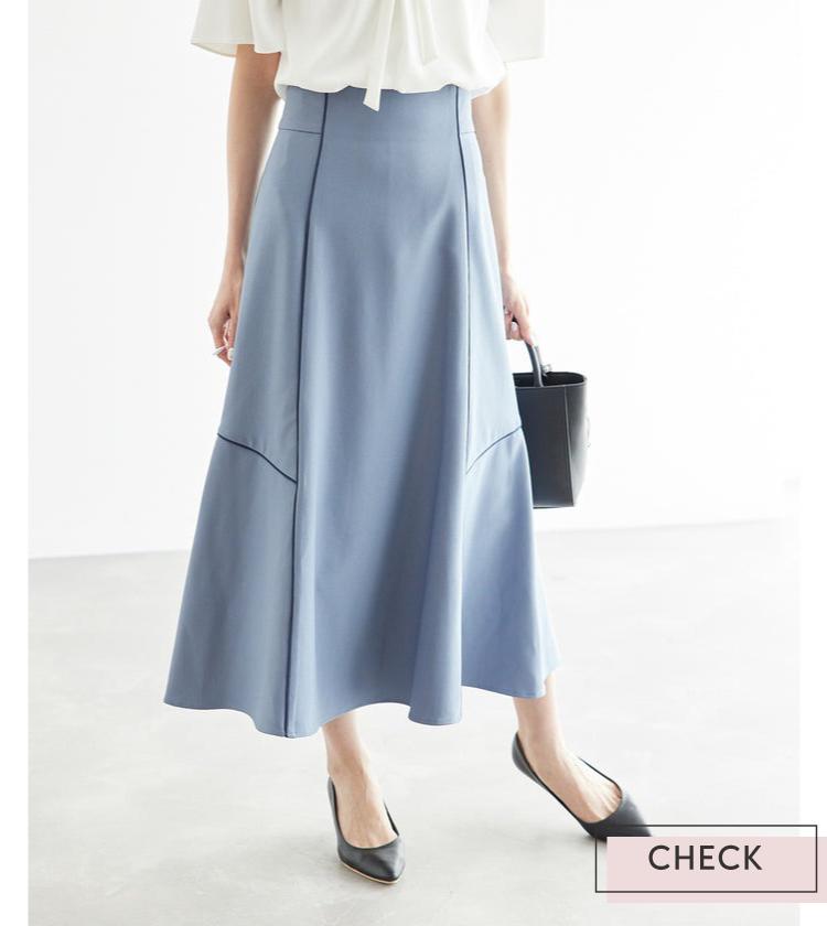 切り替えに配色パイピングを施し、裾が少しだけ広がる大人なシルエット。