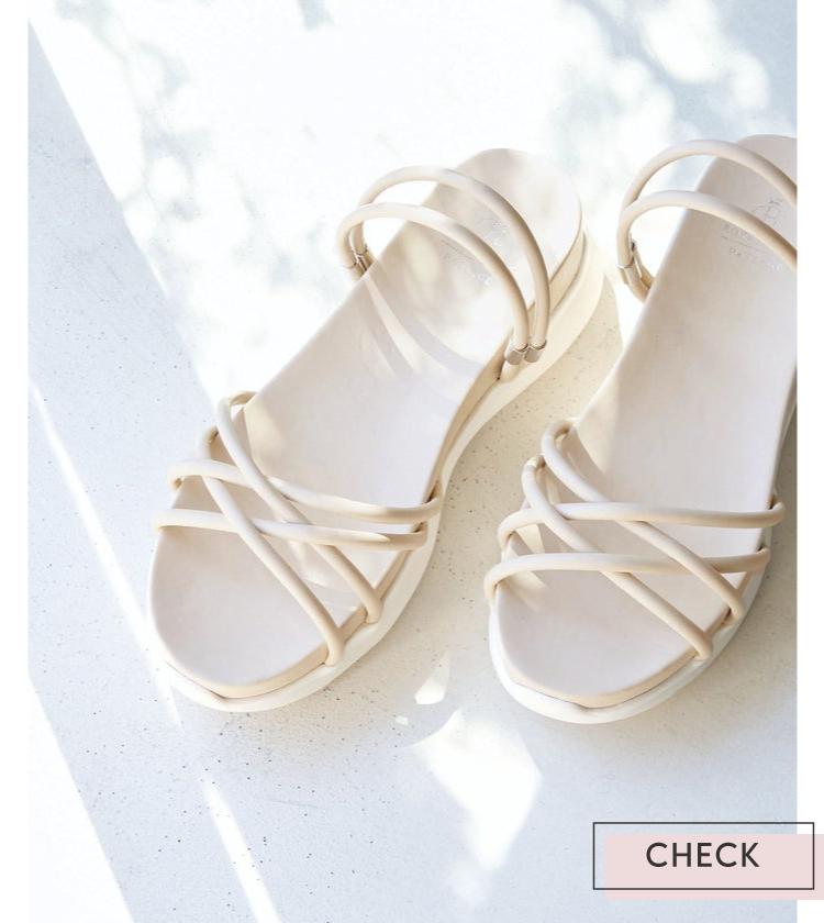 甲のストラップはバックストラップとしてかかとにも引っ掛けられるデザイン。